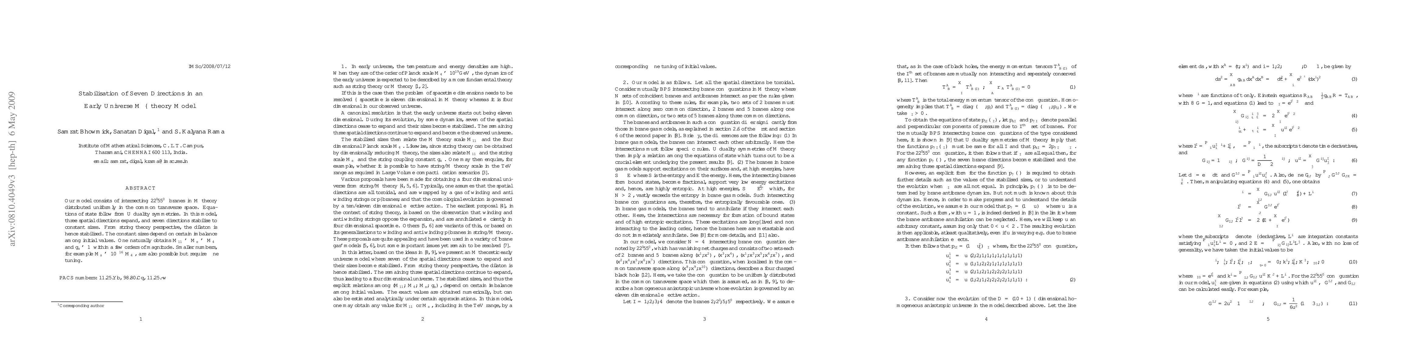 Our model consists of intersecting 22'55' branes in M theory distributed uniformly in the common transverse space. Equations of state follow from U duality symmetries. In this model, three spatial directions expand, and seven directions stabilise to constant sizes. From string theory perspective, the dilaton is hence stabilised. The constant sizes depend on certain imbalance among initial values. One naturally obtains M_{11} \simeq M_s \simeq M_4 and g_s \simeq 1 within a few orders of magnitude. Smaller numbers, for example M_s \simeq 10^{- 16} M_4, are also possible but require fine tuning.