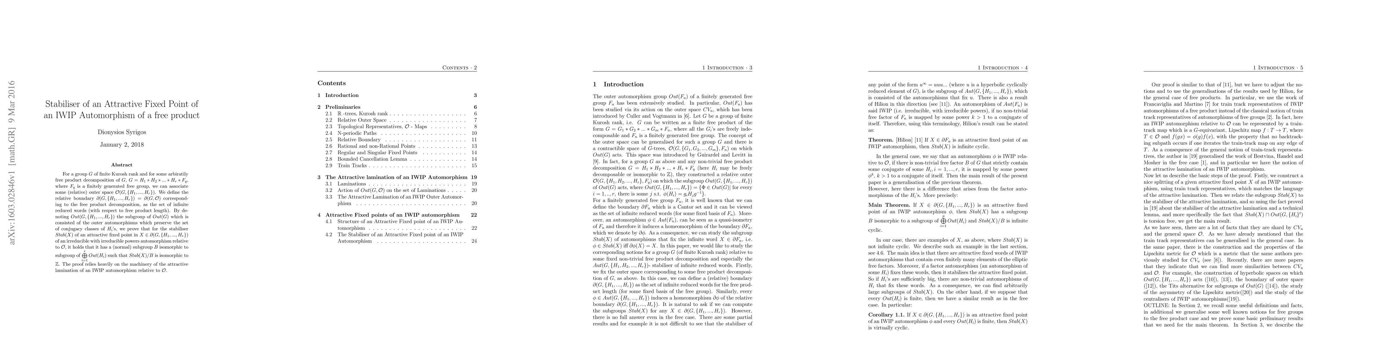 For a group $G$ of finite Kurosh rank and for some arbiratily free product decomposition of $G$, $G = H_1 \ast H_2 \ast ... \ast H_r \ast F_q$, where $F_q$ is a finitely generated free group, we can associate some (relative) outer space $\mathcal{O}(G, \{H_1,..., H_r \})$. We define the relative boundary $\partial (G, \{ H_1, ..., H_r \}) = \partial(G, \mathcal{O}) $ corresponding to the free product decomposition, as the set of infinite reduced words (with respect to free product length). By denoting $Out(G, \{ H_1, ..., H_r \})$ the subgroup of $Out(G)$ which is consisted of the outer automorphisms which preserve the set of conjugacy classes of $H_i$'s, we prove that for the stabiliser $Stab(X)$ of an attractive fixed point in $X \in \partial (G, \{ H_1, ..., H_r \})$ of an irreducible with irreducible powers automorphism relative to $\mathcal{O}$, it holds that it has a (normal) subgroup $B$ isomorphic to subgroup of $\bigoplus \limits_{i=1} ^{r} Out(H_i)$ such that $Stab(X) / B$ is isomorphic to $\mathbb{Z}$. The proof relies heavily on the machinery of the attractive lamination of an IWIP automorphism relative to $\mathcal{O}$.