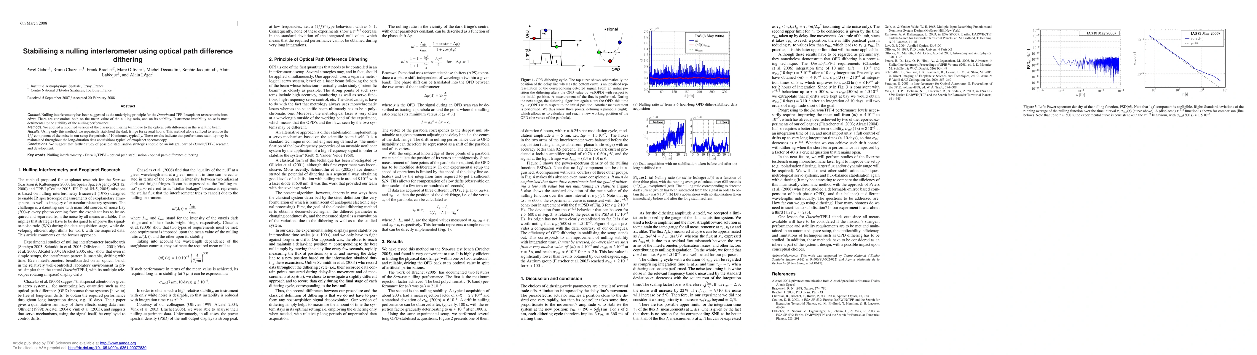The research introduces a method using optical path difference dithering to stabilize nulling interferometry, crucial for exoplanet missions like Darwin and TPF-I. The technique successfully maintained nulling performance stability for extended periods, effectively reducing 1/f noise component in setup tests.