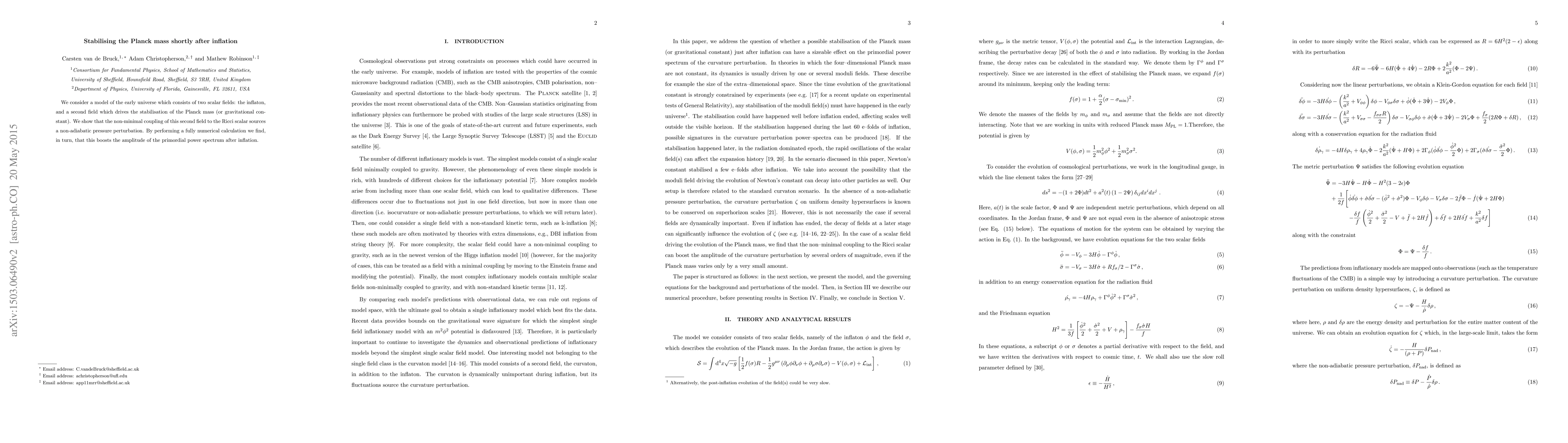 We consider a model of the early universe which consists of two scalar fields: the inflaton, and a second field which drives the stabilisation of the Planck mass (or gravitational constant). We show that the non-minimal coupling of this second field to the Ricci scalar sources a non-adiabatic pressure perturbation. By performing a fully numerical calculation we find, in turn, that this boosts the amplitude of the primordial power spectrum after inflation.