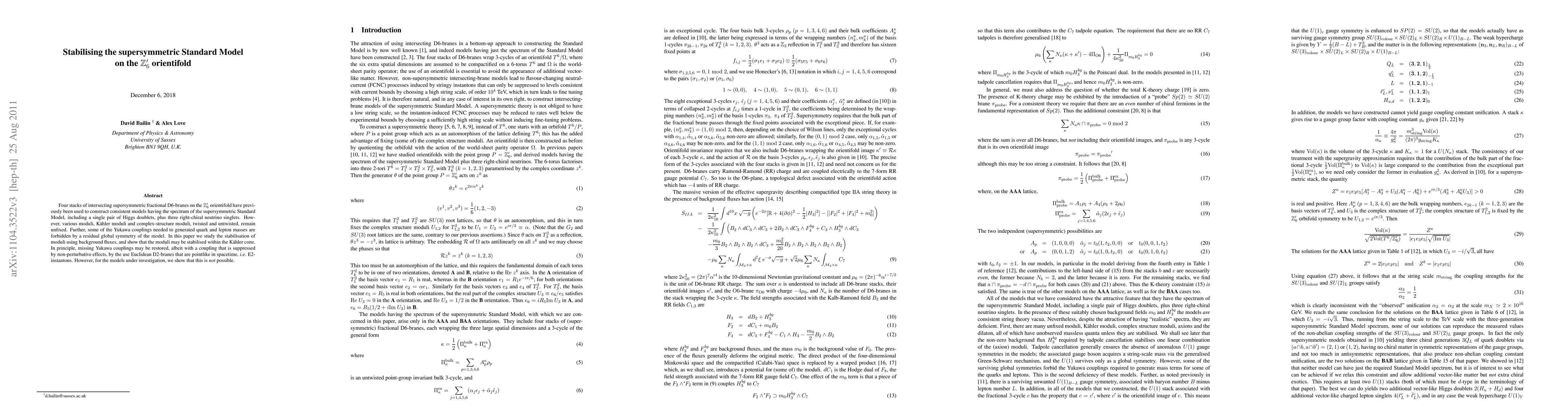 Four stacks of intersecting supersymmetric fractional D6-branes on the Z_6' orientifold have previously been used to construct consistent models having the spectrum of the supersymmetric Standard Model, including a single pair of Higgs doublets, plus three right-chiral neutrino singlets. However, various moduli, Kahler moduli and complex-structure moduli, twisted and untwisted, remain unfixed. Further, some of the Yukawa couplings needed to generated quark and lepton masses are forbidden by a residual global symmetry of the model. In this paper we study the stabilisation of moduli using background fluxes, and show that the moduli may be stabilised within the Kahler cone. In principle, missing Yukawa couplings may be restored, albeit with a coupling that is suppressed by non-perturbative effects, by the use Euclidean D2-branes that are pointlike in spacetime, i.e. E2-instantons. However, for the models under investigation, we show that this is not possible.