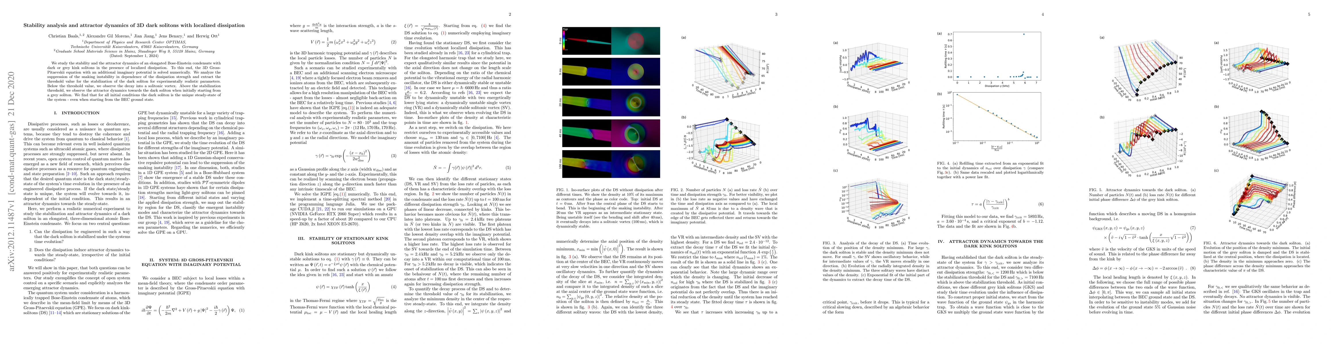 Researchers studied the stability of 3D dark solitons in a Bose-Einstein condensate with localized dissipation, finding that these solitons stabilize above a threshold value for experimentally realistic parameters.