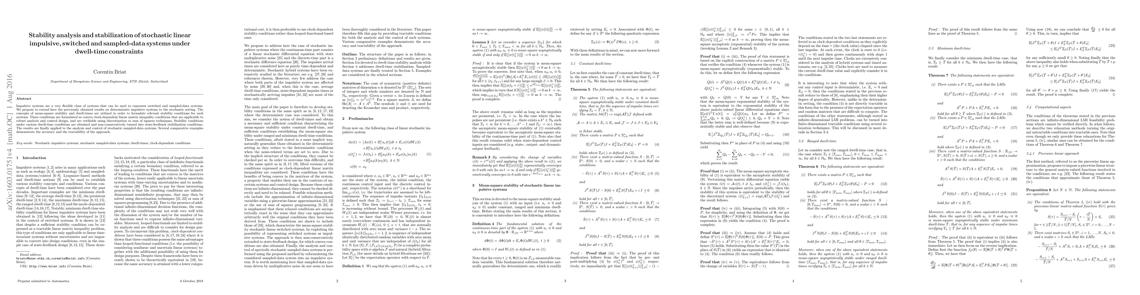 This paper extends stability analysis and stabilization techniques for stochastic linear impulsive, switched, and sampled-data systems under dwell-time constraints. It formulates mean-square stability conditions as convex linear matrix inequalities, applicable to robust control design, and demonstrates their effectiveness through comparative examples.