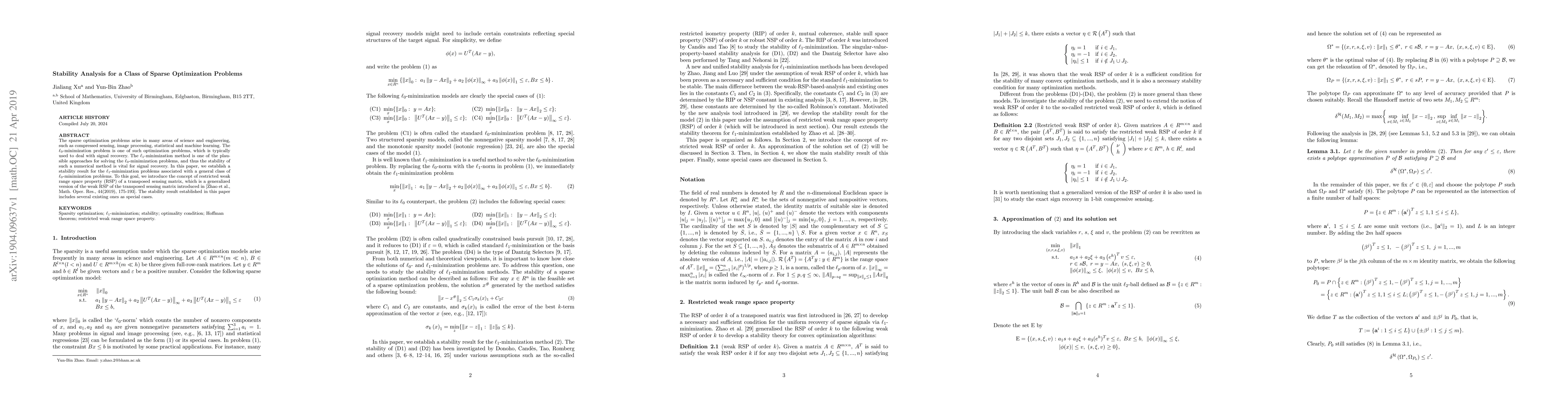 The sparse optimization problems arise in many areas of science and engineering, such as compressed sensing, image processing, statistical and machine learning. The $\ell_{0}$-minimization problem is one of such optimization problems, which is typically used to deal with signal recovery. The $\ell_{1}$-minimization method is one of the plausible approaches for solving the $\ell_{0}$-minimization problems, and thus the stability of such a numerical method is vital for signal recovery. In this paper, we establish a stability result for the $\ell_{1}$-minimization problems associated with a general class of $\ell_{0}$-minimization problems. To this goal, we introduce the concept of restricted weak range space property (RSP) of a transposed sensing matrix, which is a generalized version of the weak RSP of the transposed sensing matrix introduced in [Zhao et al., Math. Oper. Res., 44(2019), 175-193]. The stability result established in this paper includes several existing ones as special cases.