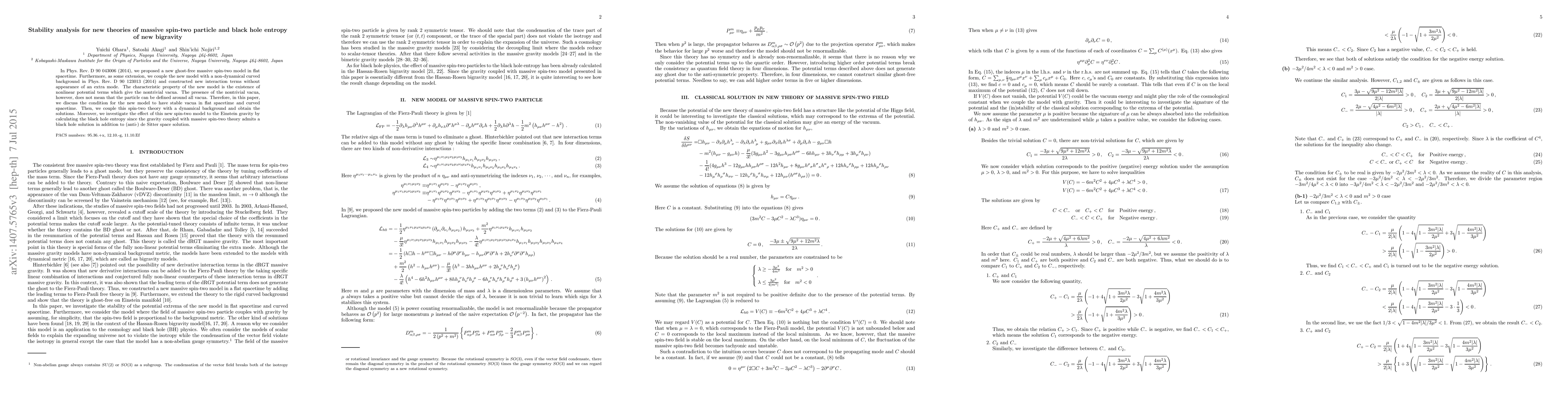 In Phys.\ Rev.\ D 90 043006 (2014), we proposed a new ghost-free massive spin-two model in flat spacetime. Furthermore, as some extension, we couple the new model with a non-dynamical curved background in Phys.\ Rev.\ D 90 123013 (2014) and constructed new interaction terms without appearance of an extra mode. The characteristic property of the new model is the existence of nonlinear potential terms which give the nontrivial vacua. The presence of the nontrivial vacua, however, does not mean that the particle can be defined around all vacua. Therefore, in this paper, we discuss the condition for the new model to have stable vacua in flat spacetime and curved spacetime. Then, we couple this spin-two theory with a dynamical background and obtain the solutions. Moreover, we investigate the effect of this new spin-two model to the Einstein gravity by calculating the black hole entropy since the gravity coupled massive spin-two theory admits a black hole solution in addition to (anti-) de Sitter space solution.