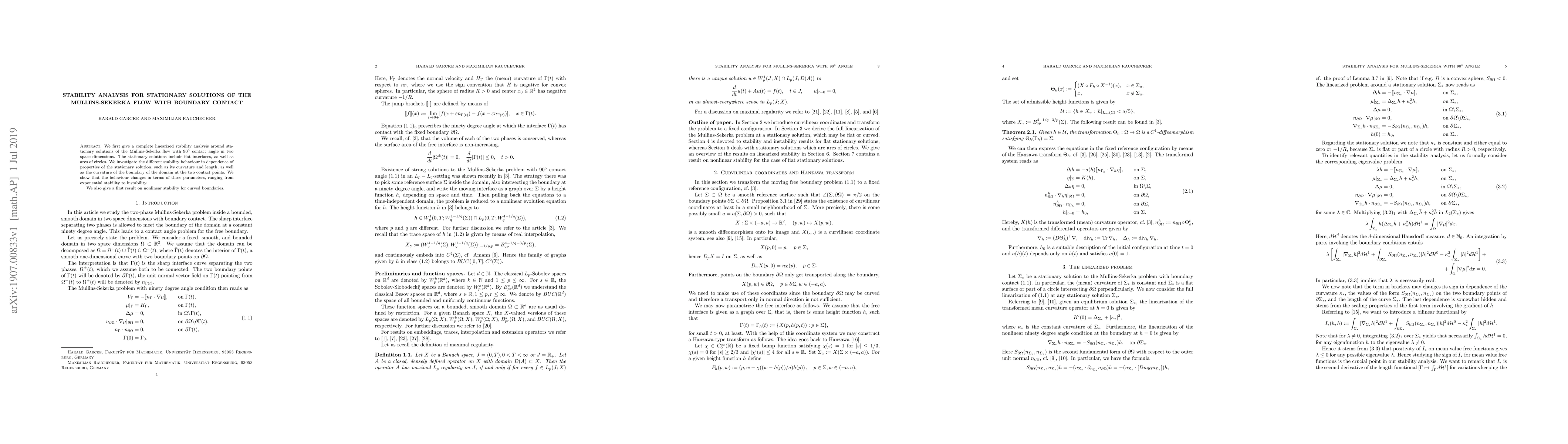 This paper conducts a linearized stability analysis of stationary solutions for the Mullins-Sekerka flow with $90^\circ$ contact angle, revealing varying stability behaviors based on curvature and length properties. It also presents initial findings on nonlinear stability for curved boundaries.