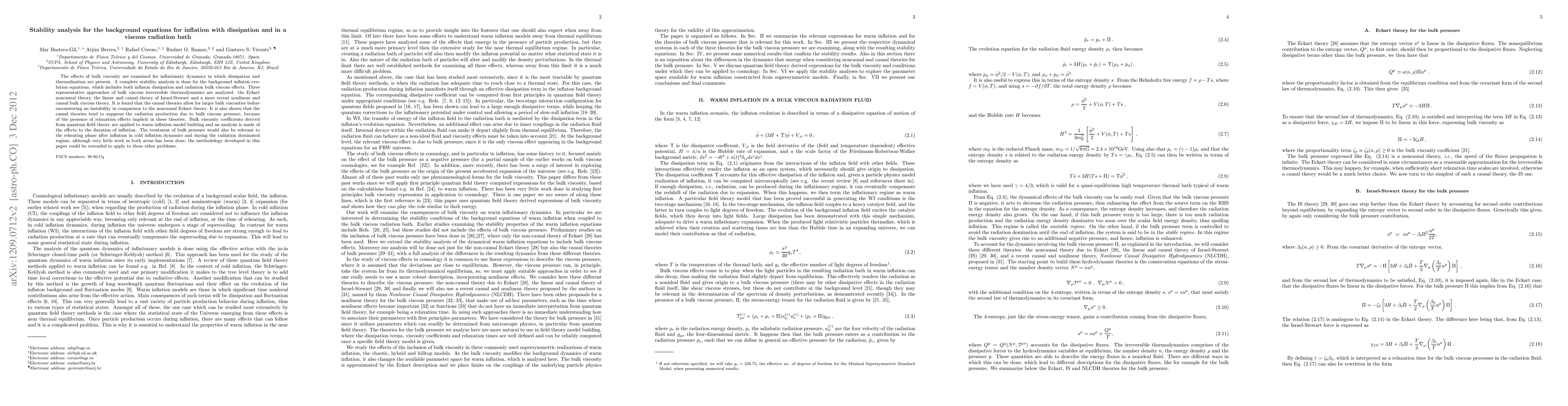 The effects of bulk viscosity are examined for inflationary dynamics in which dissipation and thermalization are present. A complete stability analysis is done for the background inflaton evolution equations, which includes both inflaton dissipation and radiation bulk viscous effects. Three representative approaches of bulk viscous irreversible thermodynamics are analyzed: the Eckart noncausal theory, the linear and causal theory of Israel-Stewart and a more recent nonlinear and causal bulk viscous theory. It is found that the causal theories allow for larger bulk viscosities before encountering an instability in comparison to the noncausal Eckart theory. It is also shown that the causal theories tend to suppress the radiation production due to bulk viscous pressure, because of the presence of relaxation effects implicit in these theories. Bulk viscosity coefficients derived from quantum field theory are applied to warm inflation model building and an analysis is made of the effects to the duration of inflation. The treatment of bulk pressure would also be relevant to the reheating phase after inflation in cold inflation dynamics and during the radiation dominated regime, although very little work in both areas has been done, the methodology developed in this paper could be extended to apply to these other problems.