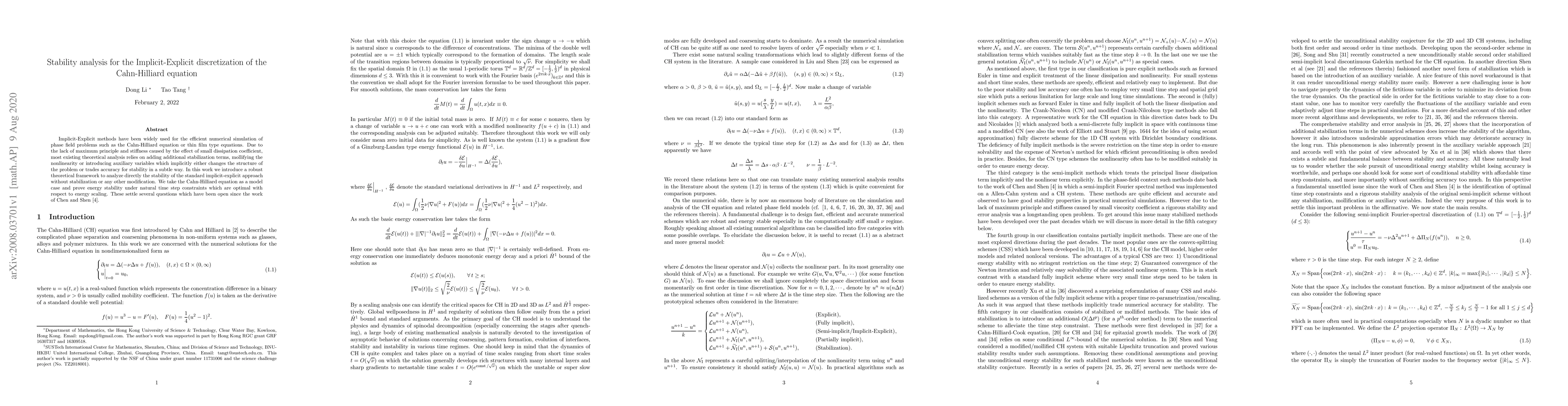 This paper presents a robust theoretical framework for analyzing the stability of the implicit-explicit discretization method for the Cahn-Hilliard equation without requiring stabilization terms or modifications. It proves energy stability under optimal time step constraints, resolving long-standing questions in the field.