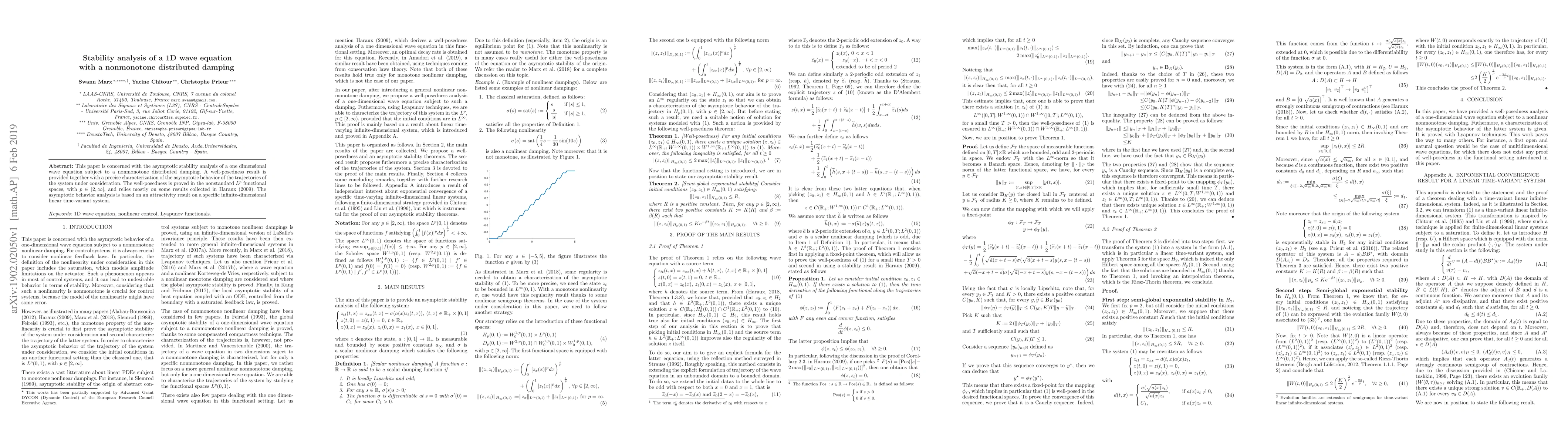 This paper analyzes the asymptotic stability of a 1D wave equation with nonmonotone distributed damping, proving well-posedness in Lp spaces and characterizing the system's trajectory behavior through an attractivity result on an infinite-dimensional linear time-variant system.