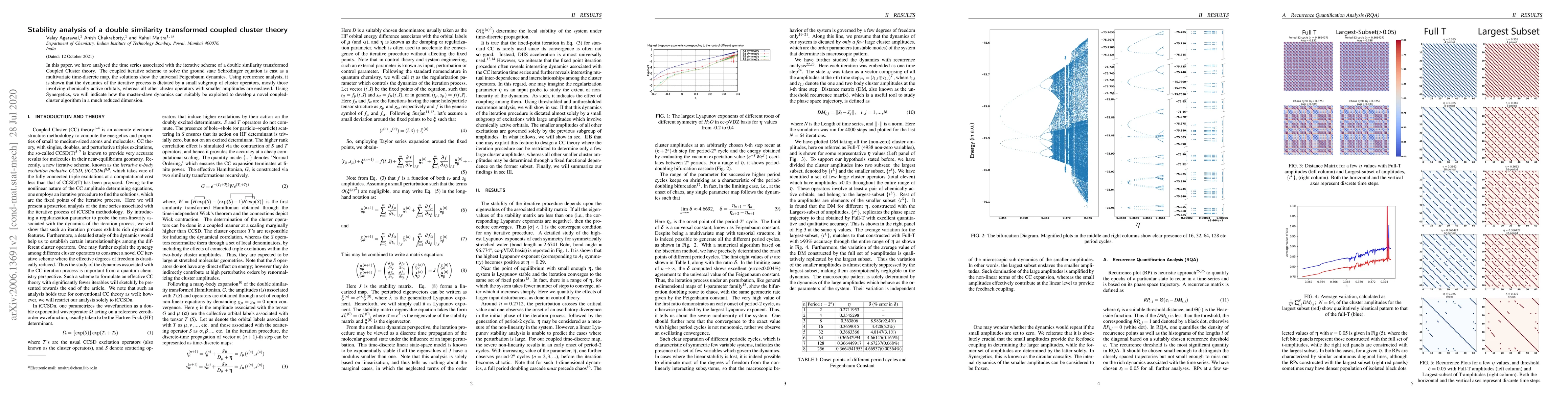 In this paper, we have analysed the time series associated with the iterative scheme of a double similarity transformed Coupled Cluster theory. The coupled iterative scheme to solve the ground state Schr{\"o}dinger equation is cast as a multivariate time-discrete map, the solutions show the universal Feigenbaum dynamics. Using recurrence analysis, it is shown that the dynamics of the iterative process is dictated by a small subgroup of cluster operators, mostly those involving chemically active orbitals, whereas all other cluster operators with smaller amplitudes are enslaved. Using Synergetics, we will indicate how the master-slave dynamics can suitably be exploited to develop a novel coupled-cluster algorithm in a much-reduced dimension.