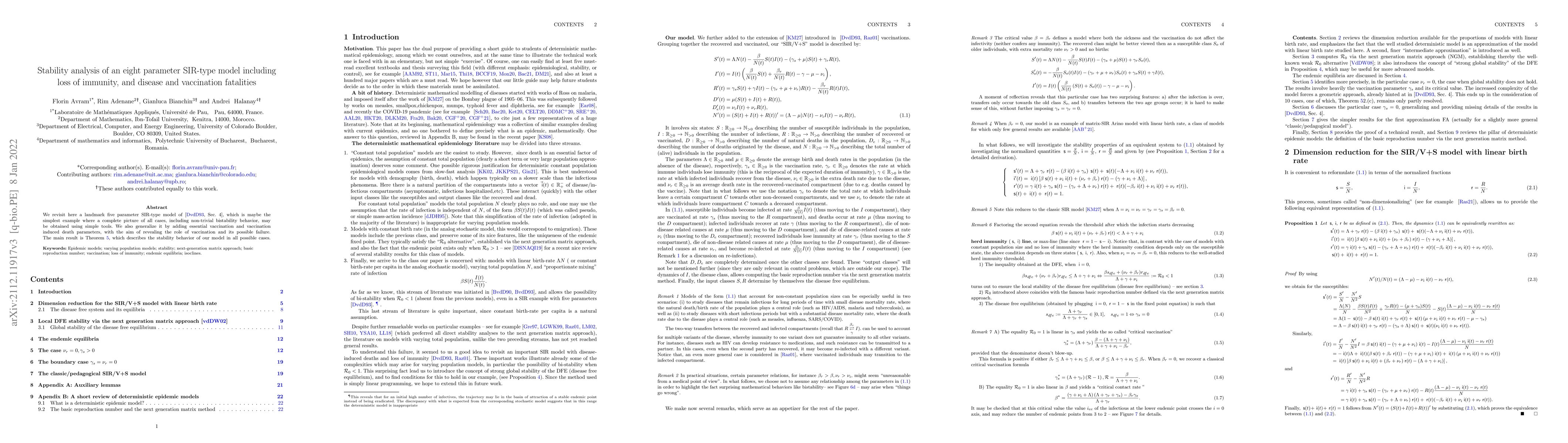 We revisit here a landmark five parameter SIR-type model of [DvdD93, Sec. 4], which is maybe the simplest example where a complete picture of all cases, including non-trivial bistability behavior, may be obtained using simple tools. We also generalize it by adding essential vaccination and vaccination-induced death parameters, with the aim of revealing the role of vaccination and its possible failure. The main result is Theorem 5, which describes the stability behavior of our model in all possible cases.