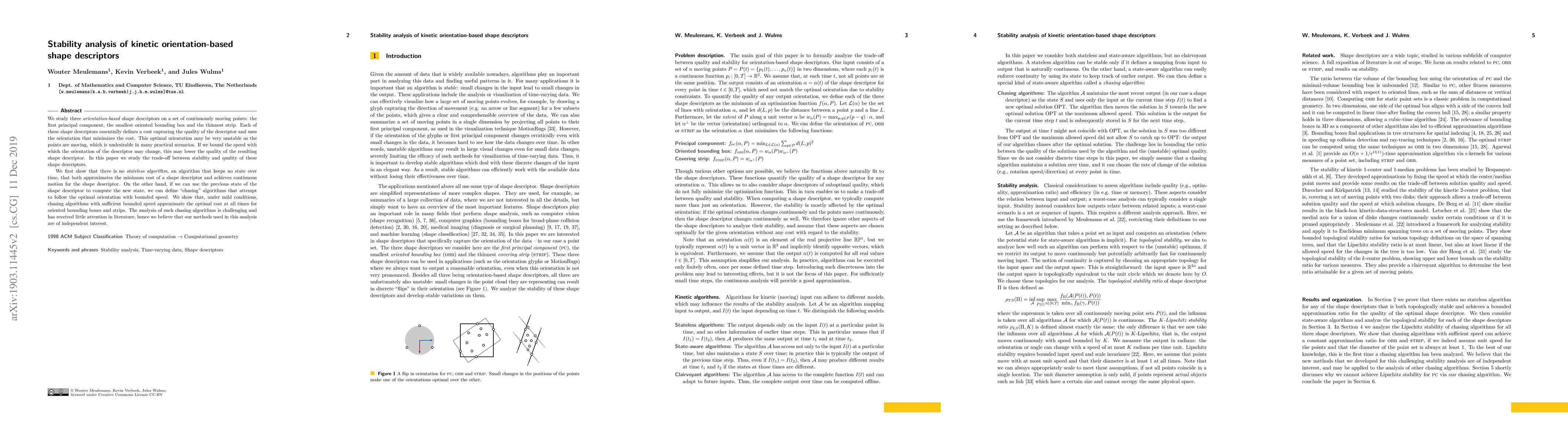 We study three orientation-based shape descriptors on a set of continuously moving points: the first principal component, the smallest oriented bounding box and the thinnest strip. Each of these shape descriptors essentially defines a cost capturing the quality of the descriptor and uses the orientation that minimizes the cost. This optimal orientation may be very unstable as the points are moving, which is undesirable in many practical scenarios. If we bound the speed with which the orientation of the descriptor may change, this may lower the quality of the resulting shape descriptor. In this paper we study the trade-off between stability and quality of these shape descriptors. We first show that there is no stateless algorithm, an algorithm that keeps no state over time, that both approximates the minimum cost of a shape descriptor and achieves continuous motion for the shape descriptor. On the other hand, if we can use the previous state of the shape descriptor to compute the new state, we can define "chasing" algorithms that attempt to follow the optimal orientation with bounded speed. We show that, under mild conditions, chasing algorithms with sufficient bounded speed approximate the optimal cost at all times for oriented bounding boxes and strips. The analysis of such chasing algorithms is challenging and has received little attention in literature, hence we believe that our methods used in this analysis are of independent interest.