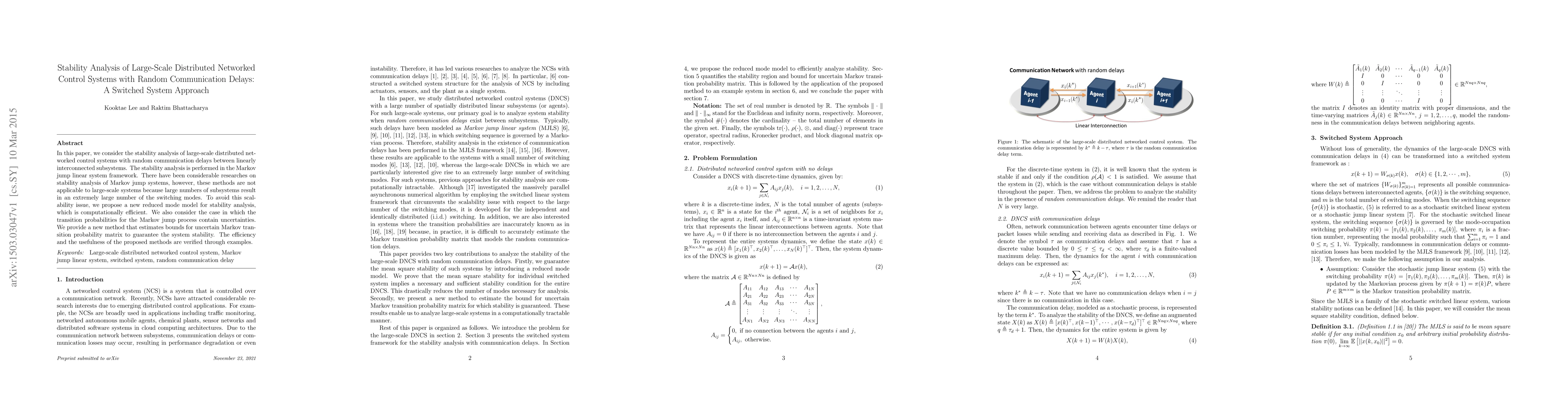This paper proposes a reduced mode model for stability analysis of large-scale networked control systems with random communication delays, addressing scalability issues. It also introduces a method for estimating bounds for uncertain Markov transition probabilities to ensure system stability, validated through examples.
