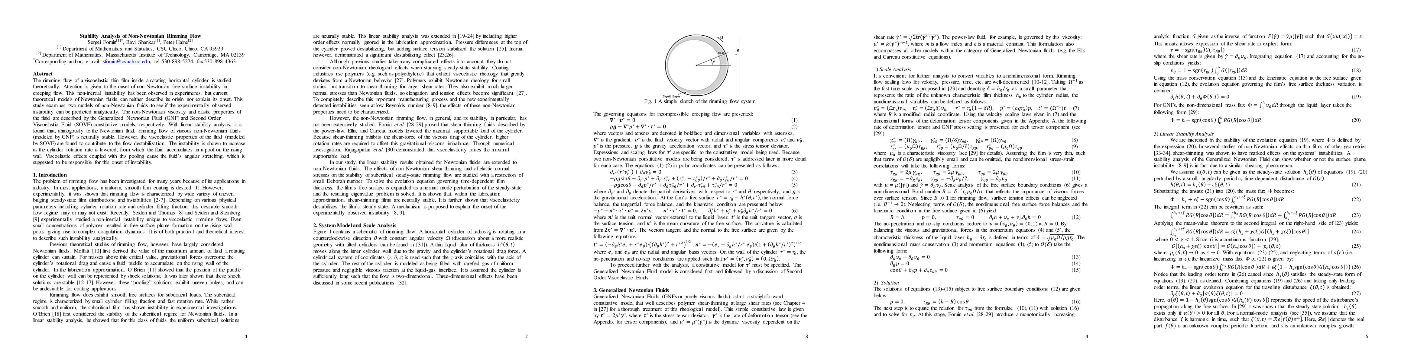 This paper investigates the stability of non-Newtonian rimming flow in a rotating cylinder, finding that while Generalized Newtonian Fluid models show neutral stability, Second Order Viscoelastic Fluid models predict destabilization due to viscoelastic effects and fluid pooling, explaining observed experimental instabilities.