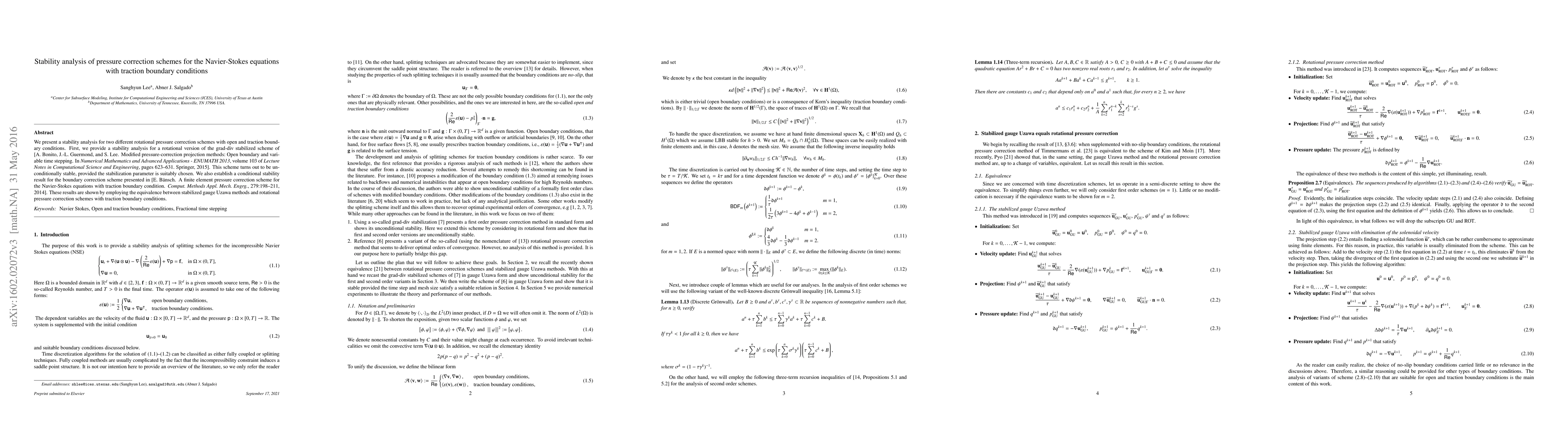 We present a stability analysis for two different rotational pressure correction schemes with open and traction boundary conditions. First, we provide a stability analysis for a rotational version of the grad-div stabilized scheme of [A. Bonito, J.-L. Guermond, and S. Lee. Modified pressure-correction projection methods: Open boundary and variable time stepping. In Numerical Mathematics and Advanced Applications - ENUMATH 2013, volume 103 of Lecture Notes in Computational Science and Engineering, pages 623-631. Springer, 2015]. This scheme turns out to be unconditionally stable, provided the stabilization parameter is suitably chosen. We also establish a conditional stability result for the boundary correction scheme presented in [E. Bansch. A finite element pressure correction scheme for the Navier-Stokes equations with traction boundary condition. Comput. Methods Appl. Mech. Engrg., 279:198-211, 2014]. These results are shown by employing the equivalence between stabilized gauge Uzawa methods and rotational pressure correction schemes with traction boundary conditions.