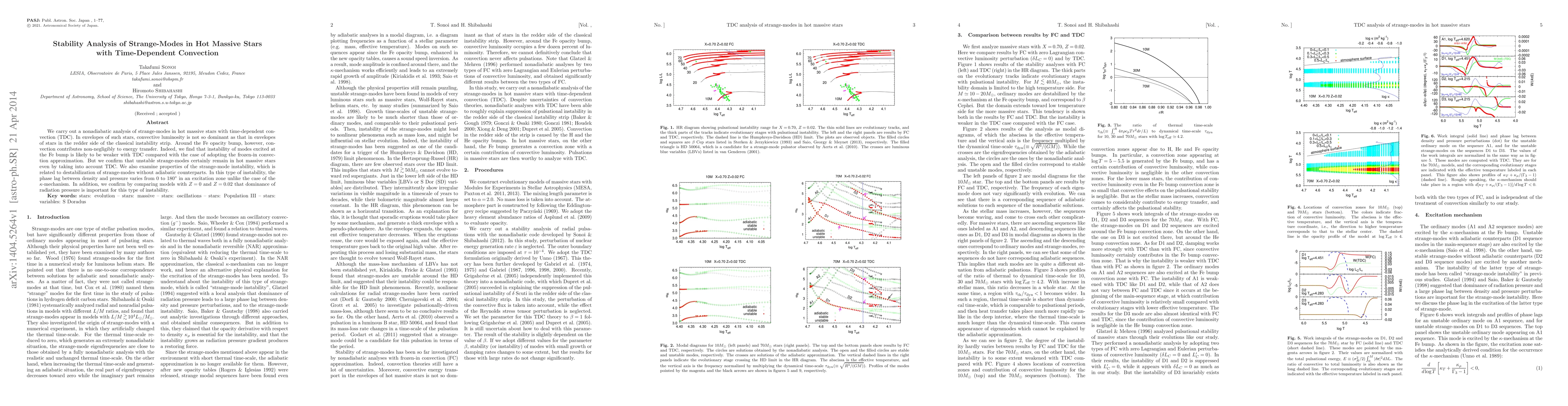 This paper analyzes the stability of strange-modes in hot massive stars with time-dependent convection, finding that while convection can suppress instabilities near the Fe opacity bump, unstable strange-modes still emerge. The study also reveals a unique instability mechanism where the phase lag between density and pressure varies significantly, dependent on the dominance of radiation pressure.