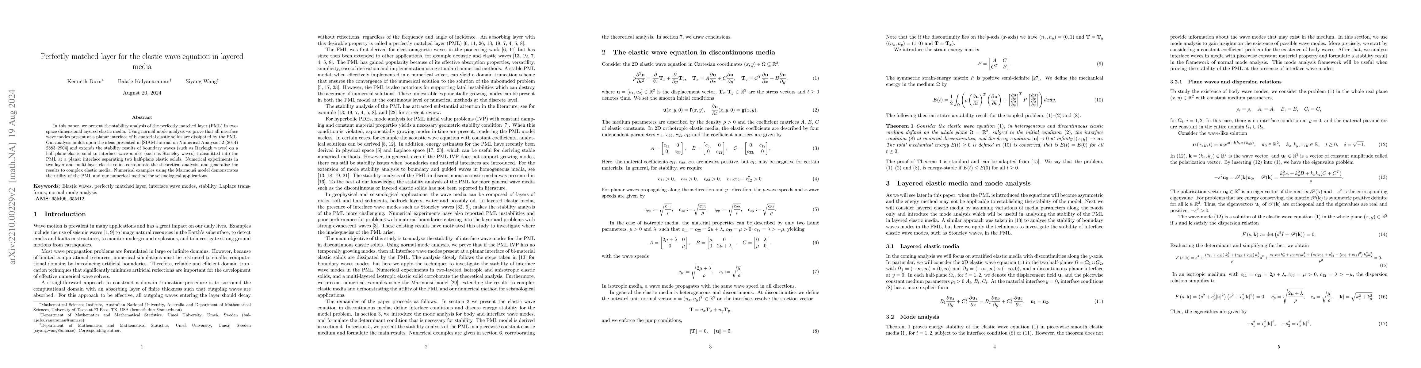 This paper conducts stability analysis of the perfectly matched layer (PML) for the elastic wave equation in layered media, proving through normal mode analysis that all interface wave modes are dissipated by the PML. Numerical experiments in both two-layer and multi-layer elastic solids confirm the theoretical findings.