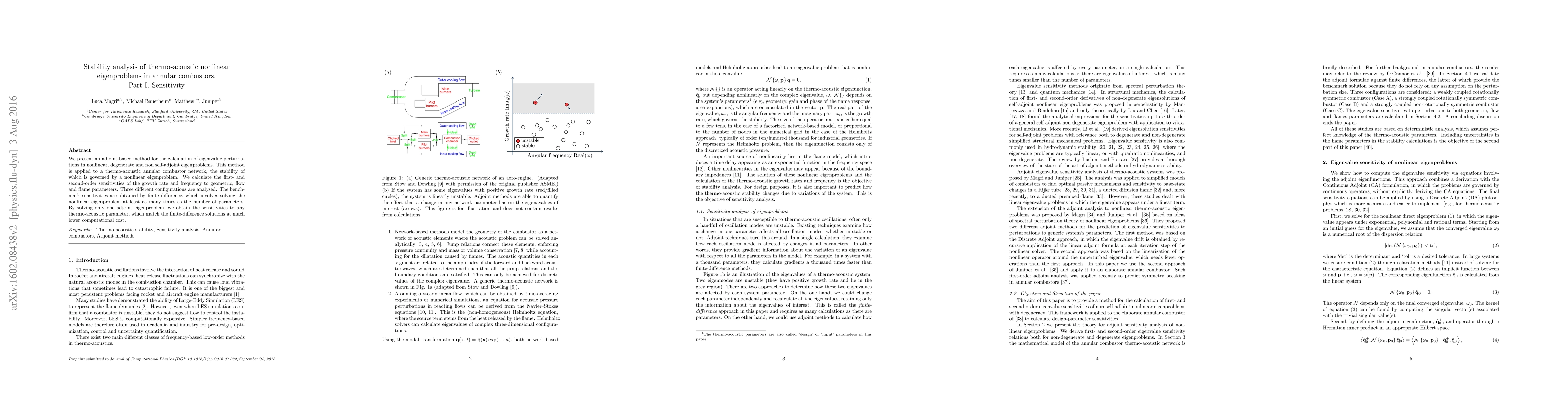 Researchers developed a method to analyze the sensitivity of thermo-acoustic stability in annular combustors using an adjoint-based approach, reducing computational cost by solving only one eigenproblem.
