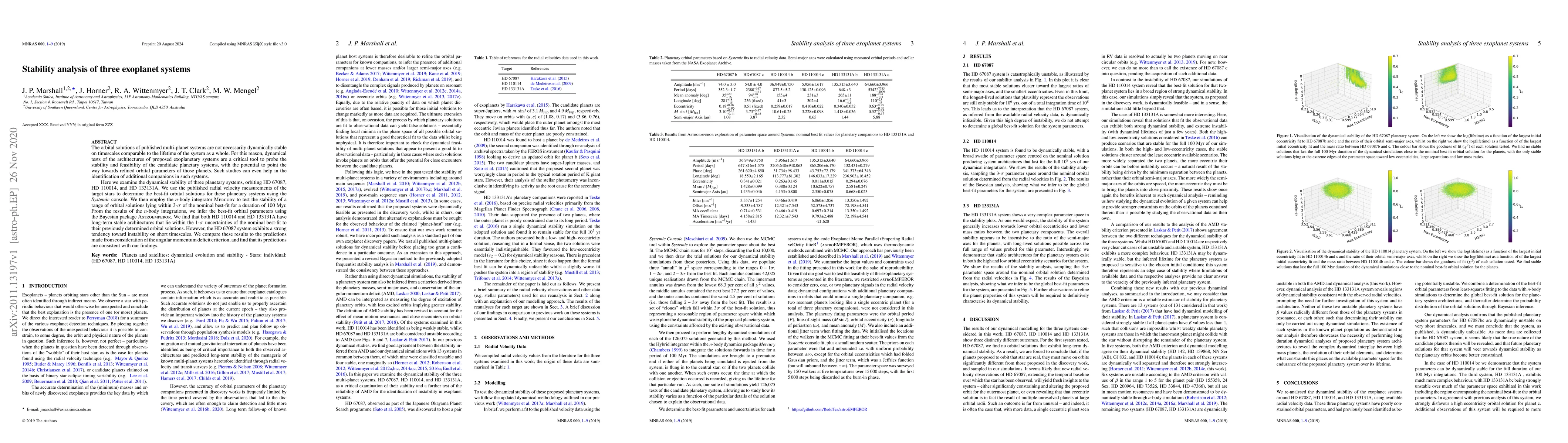 The orbital solutions of published multi-planet systems are not necessarily dynamically stable on timescales comparable to the lifetime of the system as a whole. For this reason, dynamical tests of the architectures of proposed exoplanetary systems are a critical tool to probe the stability and feasibility of the candidate planetary systems, with the potential to point the way towards refined orbital parameters of those planets. Such studies can even help in the identification of additional companions in such systems. Here we examine the dynamical stability of three planetary systems, orbiting HD 67087, HD 110014, and HD 133131A. We use the published radial velocity measurements of the target stars to determine the best-fit orbital solutions for these planetary systems using the Systemic console. We then employ the n-body integrator Mercury to test the stability of a range of orbital solutions lying within 3-$\sigma$ of the nominal best-fit for a duration of 100 Myr. From the results of the n-body integrations, we infer the best-fit orbital parameters using the Bayesian package Astroemperor. We find that both HD 110014 and HD 133131A have long-term stable architectures that lie within the 1-$\sigma$ uncertainties of the nominal best-fit to their previously determined orbital solutions. However, the HD 67087 system exhibits a strong tendency toward instability on short timescales. We compare these results to the predictions made from consideration of the angular momentum deficit criterion, and find that its predictions are consistent with our findings.
