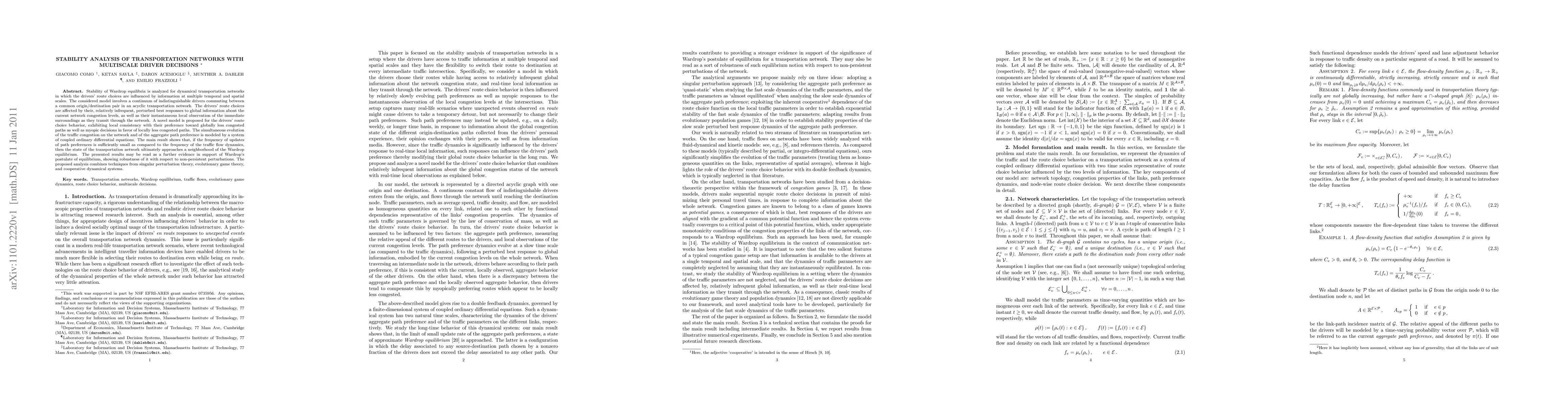 This paper analyzes stability in transportation networks with drivers making decisions based on local and global information at multiple scales. It shows that the network approaches a neighborhood of Wardrop equilibrium under certain conditions.