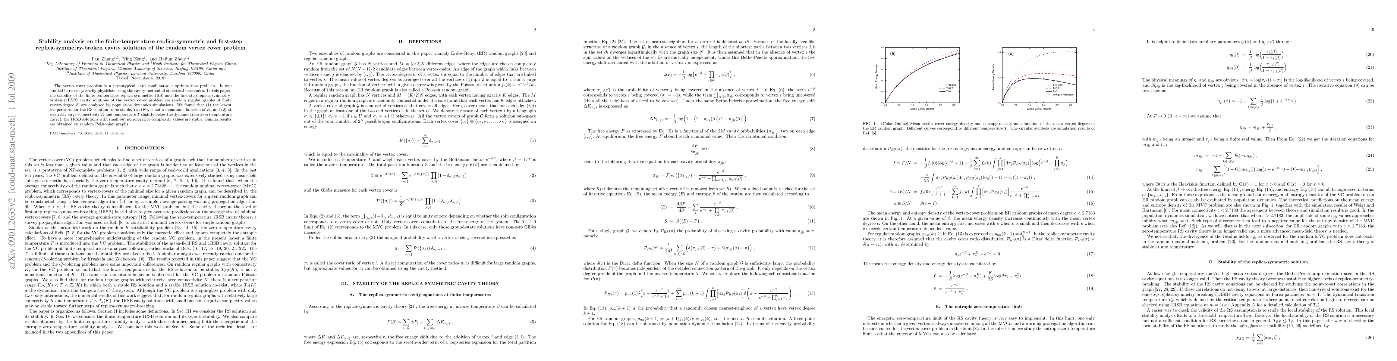This paper analyzes the stability of finite-temperature replica-symmetric and first-step replica-symmetry-broken solutions for the vertex cover problem on random graphs using population dynamics simulations. It finds that the stability of RS solutions is non-monotonic with connectivity, and 1RSB solutions with small complexity are stable at large connectivity and temperatures below the dynamic transition.