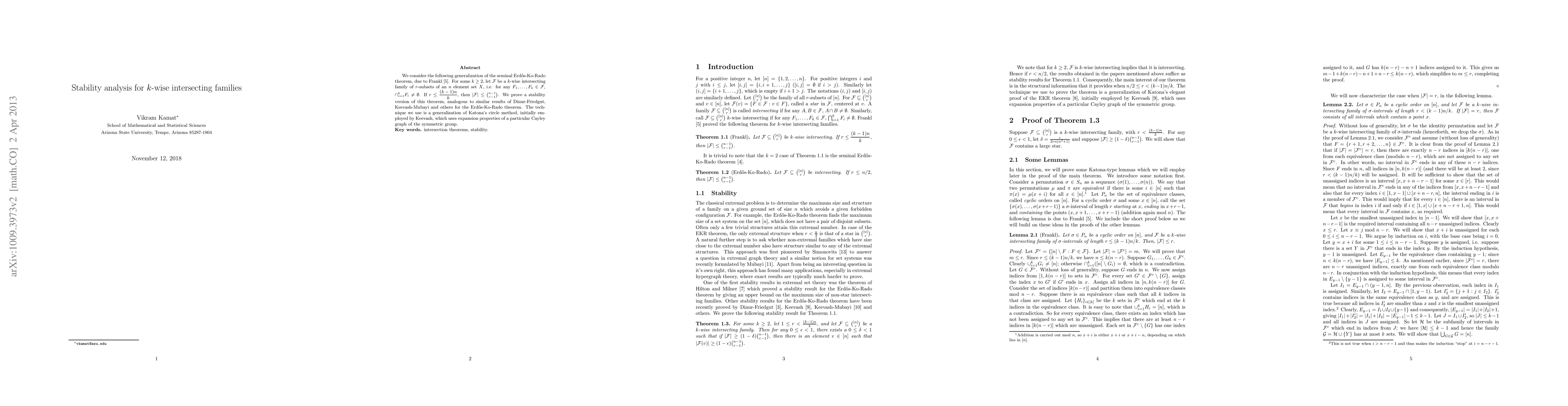 Researchers prove a stability version of the Erdös-Ko-Rado theorem, finding that a k-wise intersecting family of r-subsets in an n-element set is limited to a certain size when k > (r-1)n/k.