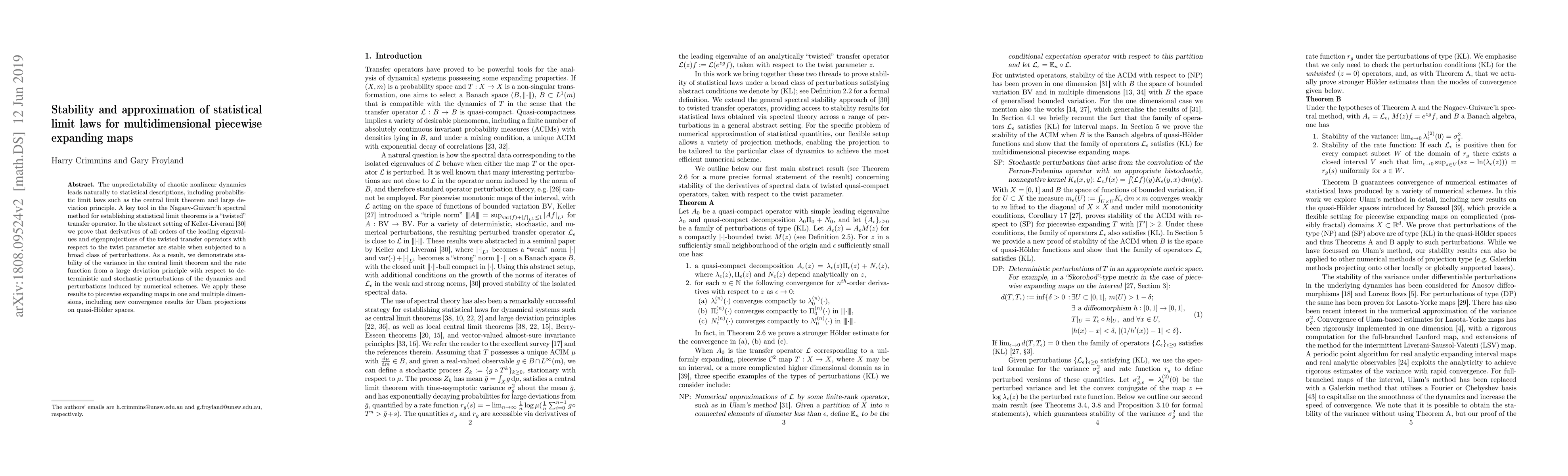 This paper proves stability of statistical limit laws under perturbations for multidimensional piecewise expanding maps, using the Nagaev-Guivarc'h spectral method and the stability of derivatives of twisted transfer operators. It demonstrates the robustness of variance and rate functions in central limit and large deviation principles.