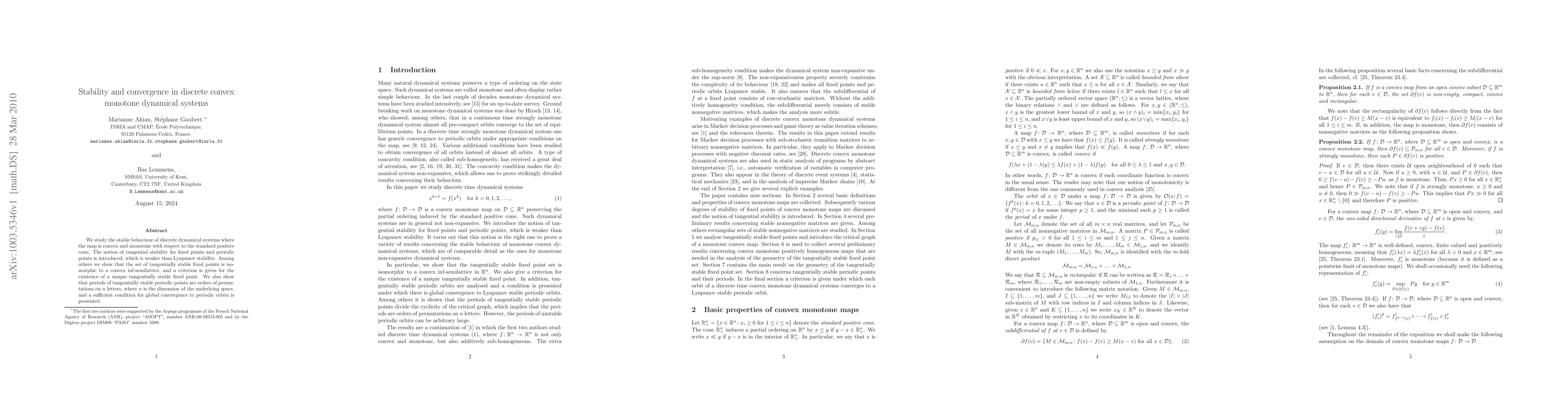 This paper explores the stability and convergence in discrete convex monotone dynamical systems, introducing tangential stability for fixed and periodic points. It demonstrates that tangentially stable fixed points form a convex inf-semilattice and provides criteria for their uniqueness and global convergence to periodic orbits.