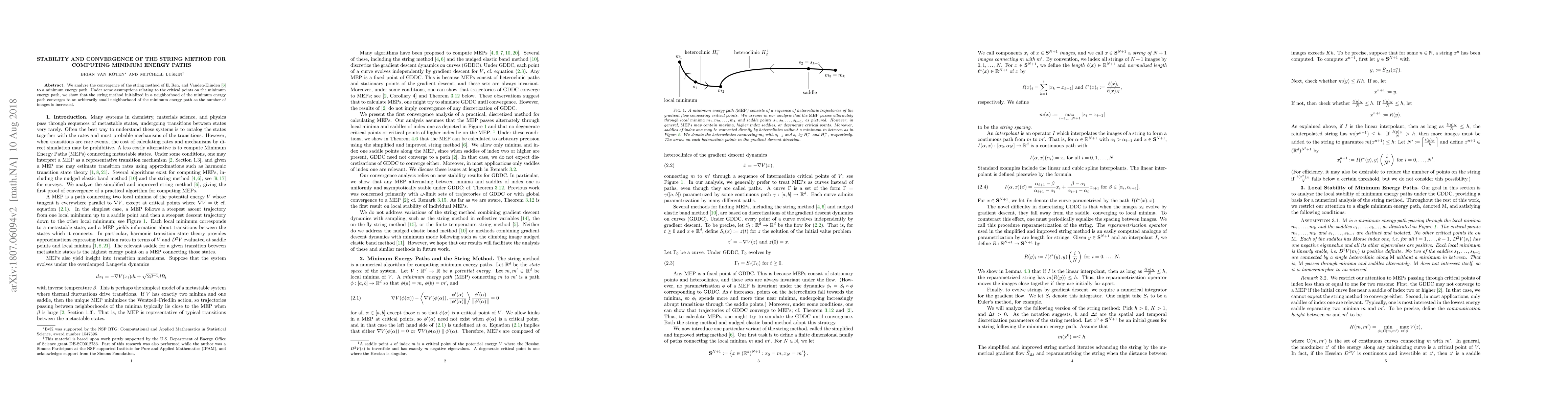 This research paper analyzes the string method for computing minimum energy paths, proving its convergence under certain conditions. The method, initialized near the path, approaches an arbitrarily small neighborhood of the minimum energy path as more images are added.