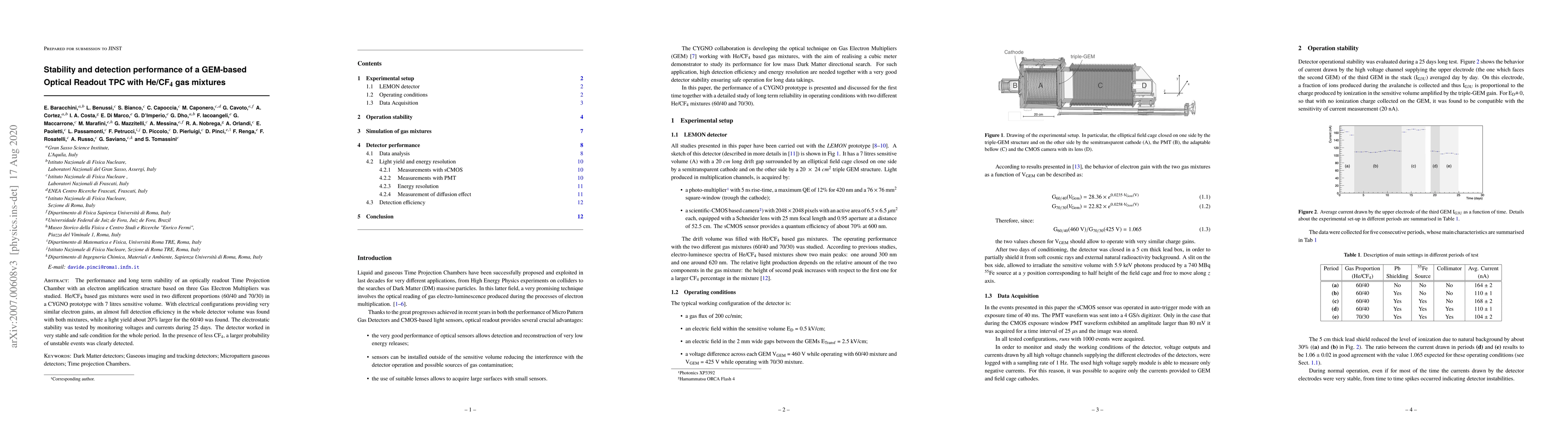 Researchers studied a GEM-based Optical Readout TPC using He/CF$_4$ gas mixtures and found that the detector achieved almost full detection efficiency with both mixtures, while one mixture showed 20% larger light yield. The detector remained stable over 25 days.