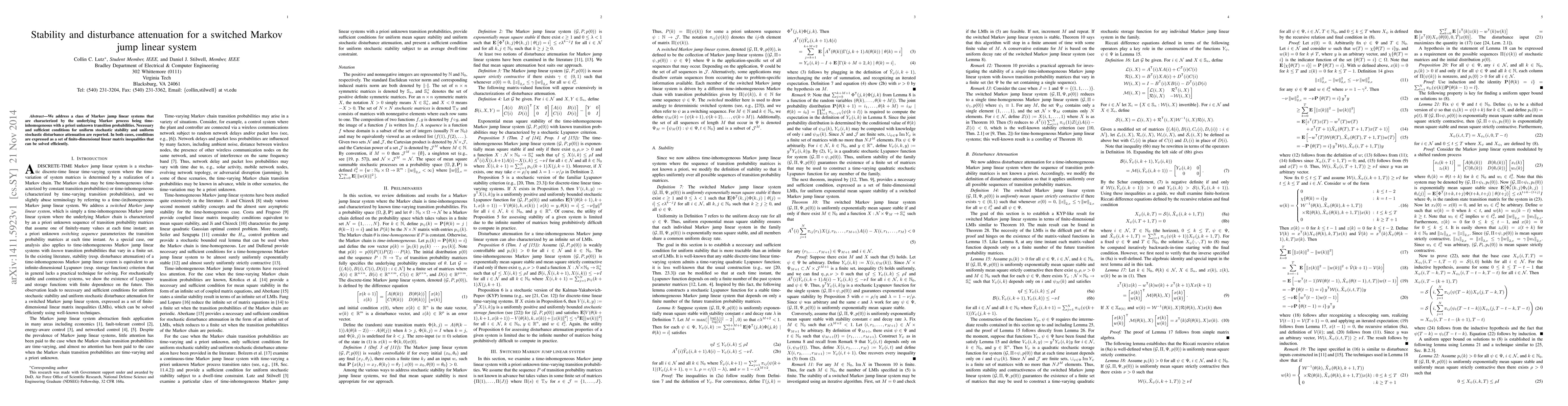We address a class of Markov jump linear systems that are characterized by the underlying Markov process being time-inhomogeneous with a priori unknown transition probabilities. Necessary and sufficient conditions for uniform stochastic stability and uniform stochastic disturbance attenuation are reported. In both cases, conditions are expressed as a set of finite-dimensional linear matrix inequalities that can be solved efficiently.