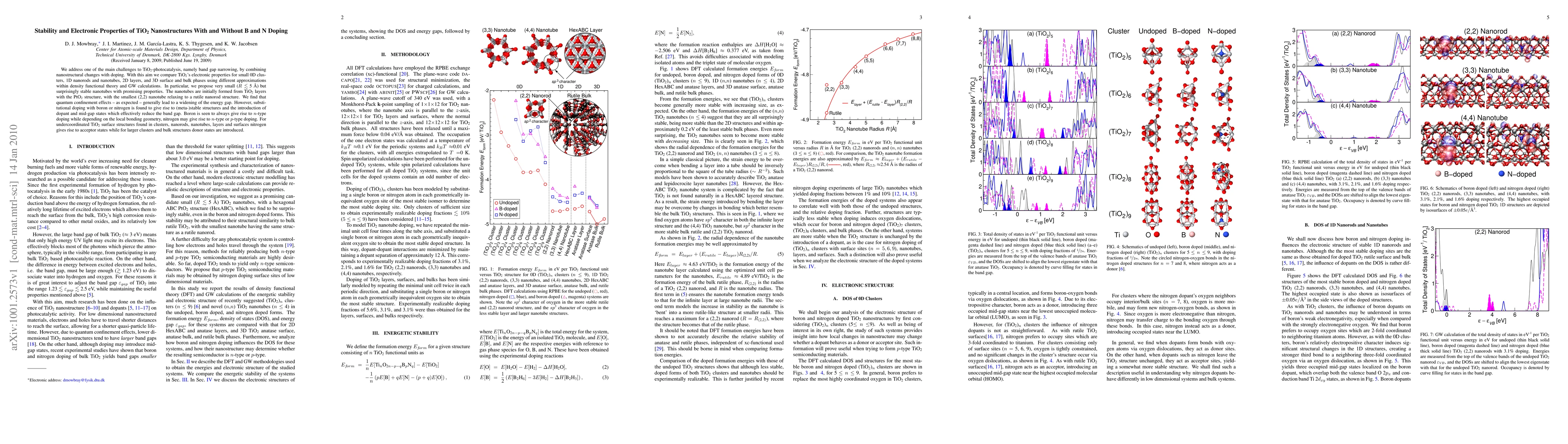This study investigates TiO2 nanostructures with and without B and N doping to address band gap narrowing in photocatalysis, finding that nitrogen doping can effectively reduce the band gap and introduce mid-gap states.
