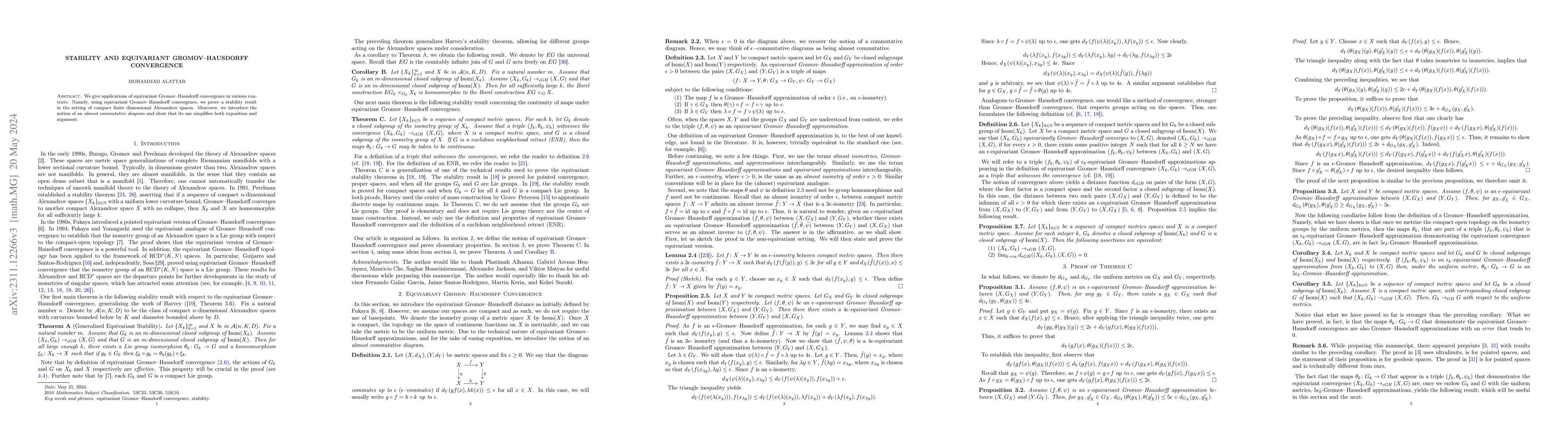 This paper explores applications of equivariant Gromov-Hausdorff convergence, proving stability in compact Alexandrov spaces and introducing an "almost commutative diagram" to simplify exposition and argumentation.
