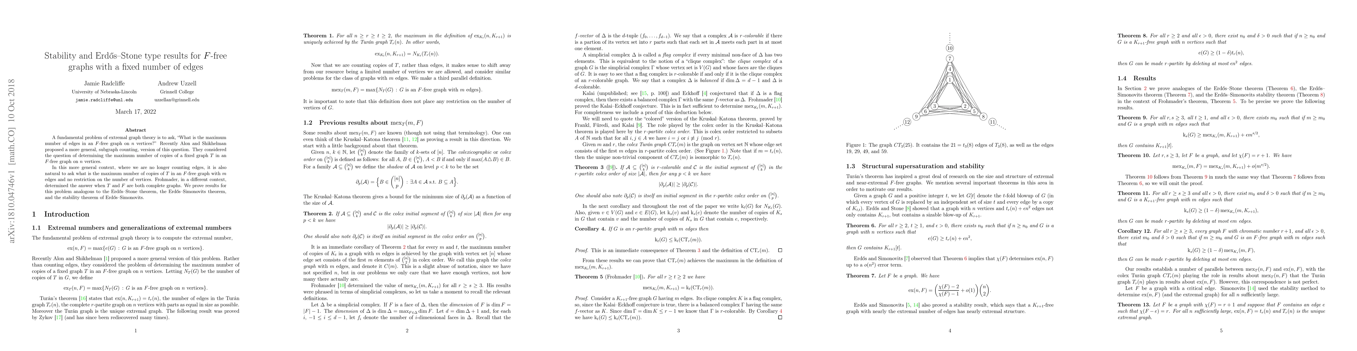 This paper investigates the maximum number of copies of a fixed graph \( T \) in \( F \)-free graphs with a fixed number of edges, proving results analogous to the Erdős-Stone theorem and related stability results. The findings extend previous work by Frohmader on complete graphs and provide new insights into extremal graph theory.