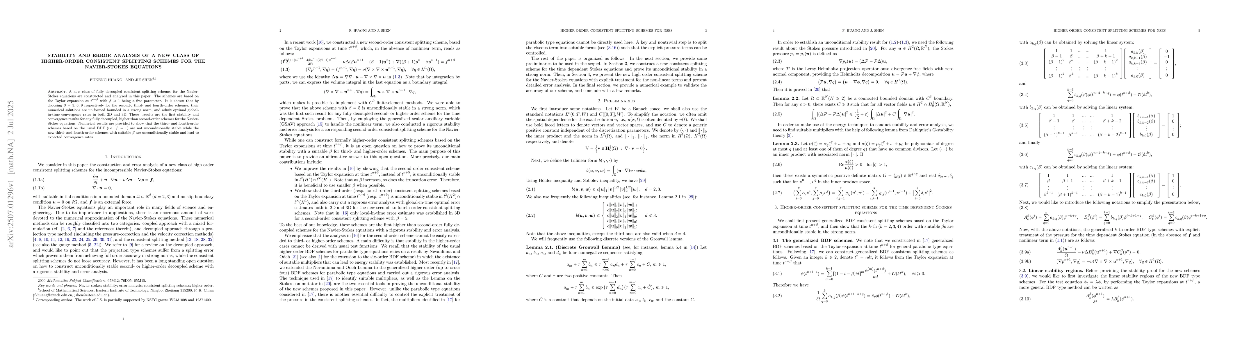 A new class of fully decoupled consistent splitting schemes for the Navier-Stokes equations are constructed and analyzed in this paper. The schemes are based on the Taylor expansion at $t^{n+\beta}$ with $\beta\ge 1$ being a free parameter. It is shown that by choosing {\color{black} $\beta= 3, \,6,\,9$} respectively for the second-, third- and fourth-order schemes, their numerical solutions are uniformed bounded in a strong norm, and admit optimal global-in-time convergence rates in both 2D and 3D. {\color{black}These } results are the first stability and convergence results for any fully decoupled, higher than second-order schemes for the Navier-Stokes equations. Numerical results are provided to show that the third- and fourth-order schemes based on the usual BDF (i.e. $\beta=1$) are not unconditionally stable while the new third- and fourth-order schemes with suitable $\beta$ are unconditionally stable and lead to expected convergence rates.