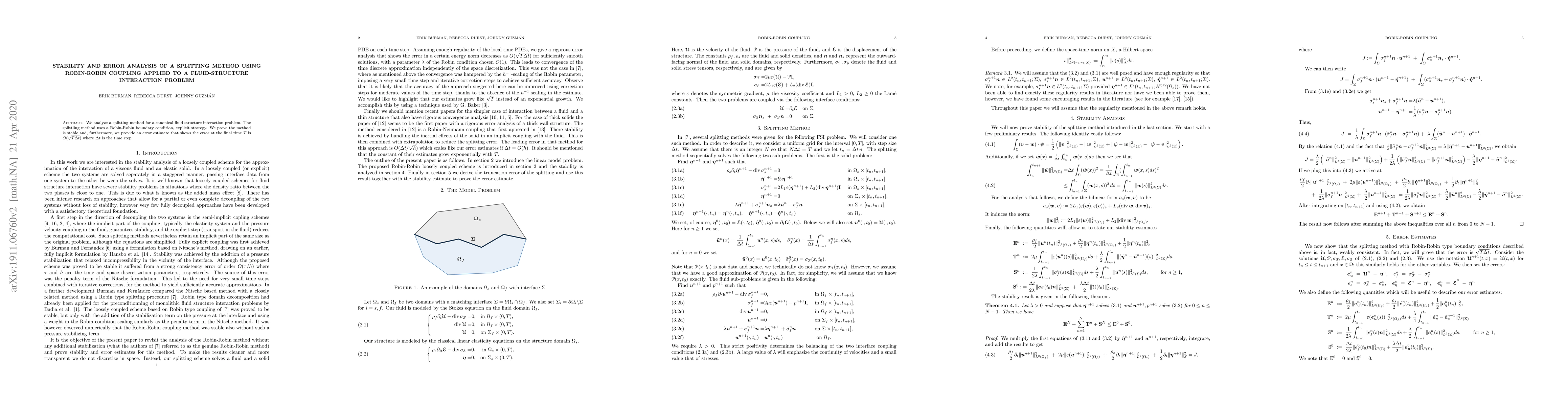 This paper analyzes a splitting method for fluid-structure interaction problems using a Robin-Robin coupling strategy, proving its stability and providing an error estimate of $O(\sqrt{T\Delta t})$ at final time $T$.