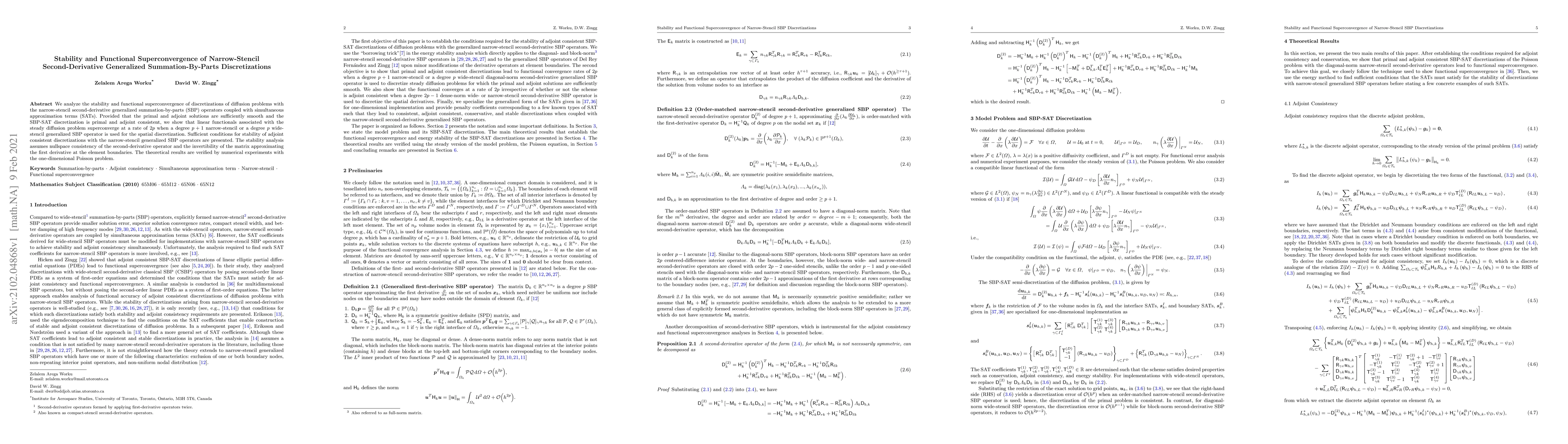 This paper investigates the stability and functional superconvergence of narrow-stencil second-derivative generalized summation-by-parts (SBP) discretizations for diffusion problems. It demonstrates superconvergence of linear functionals under certain smoothness conditions and presents stability conditions for consistent discretizations.