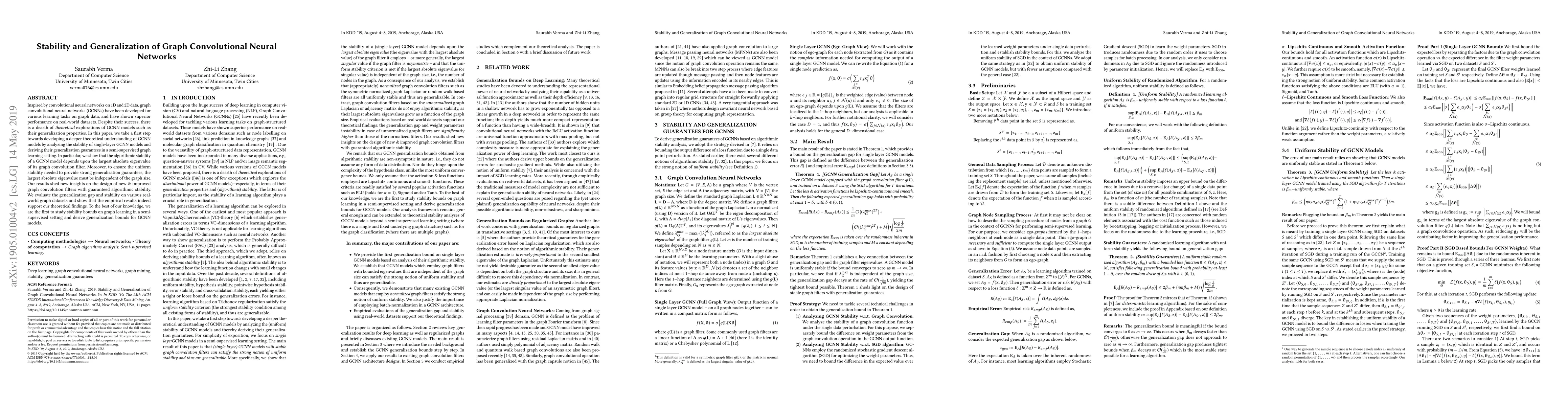 This paper investigates the theoretical stability and generalization properties of graph convolutional neural networks (GCNNs), revealing that algorithmic stability depends on the largest absolute eigenvalue of the graph convolution filter. The study provides generalization guarantees for GCNNs in semi-supervised settings and demonstrates these findings through empirical evaluations on real-world datasets.