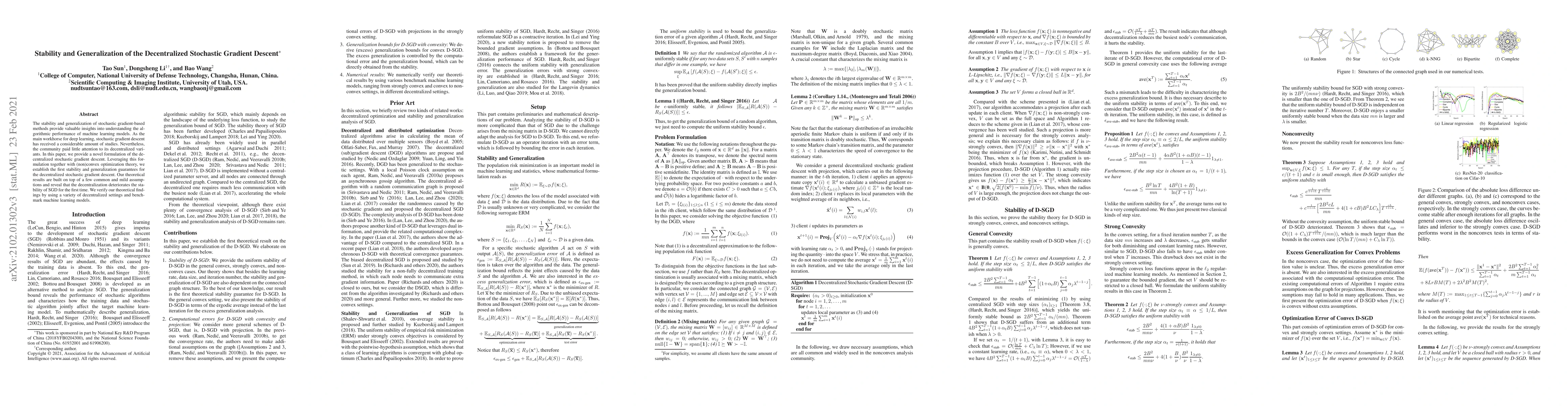 This paper introduces a novel formulation for decentralized stochastic gradient descent and provides the first stability and generalization guarantees for this method. Theoretical results show that decentralization negatively impacts SGD stability, which is verified through empirical tests using various decentralized settings and machine learning models.