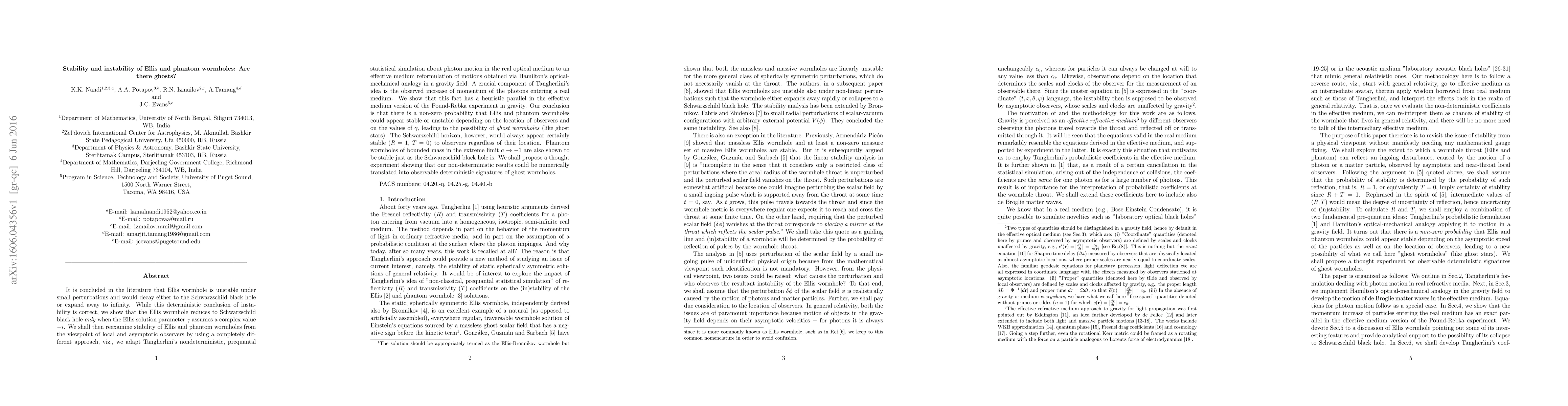 This research offers new insights into wormhole stability by challenging the deterministic conclusions of previous studies, suggesting that wormholes could appear stable or unstable depending on observer location and parameters, thus proposing the concept of 'ghost wormholes'.
