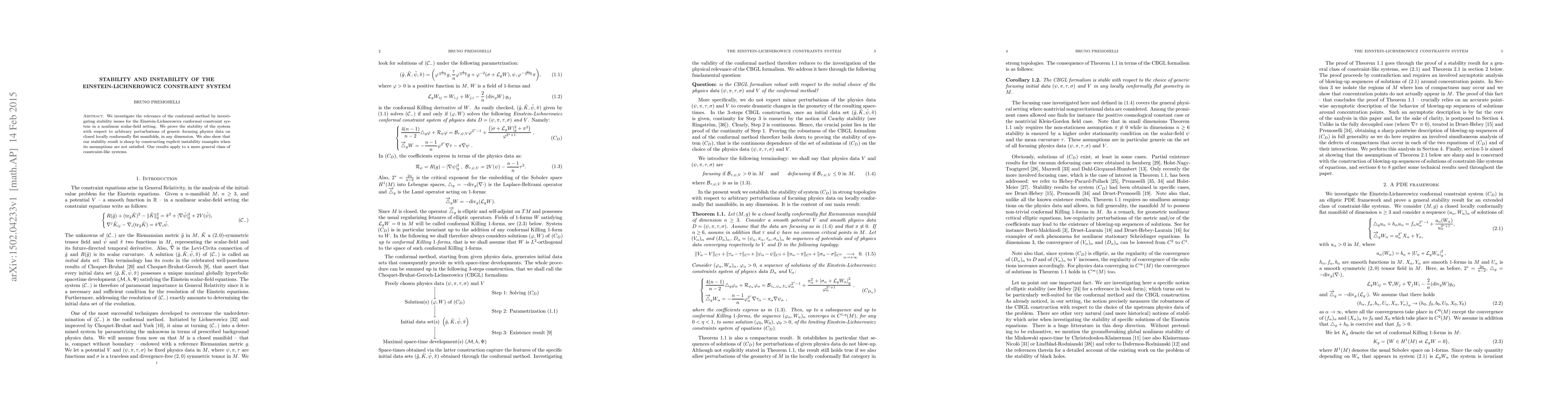 Researchers prove stability of the Einstein-Lichnerowicz constraint system in various dimensions, while also demonstrating that instability can occur under specific conditions.