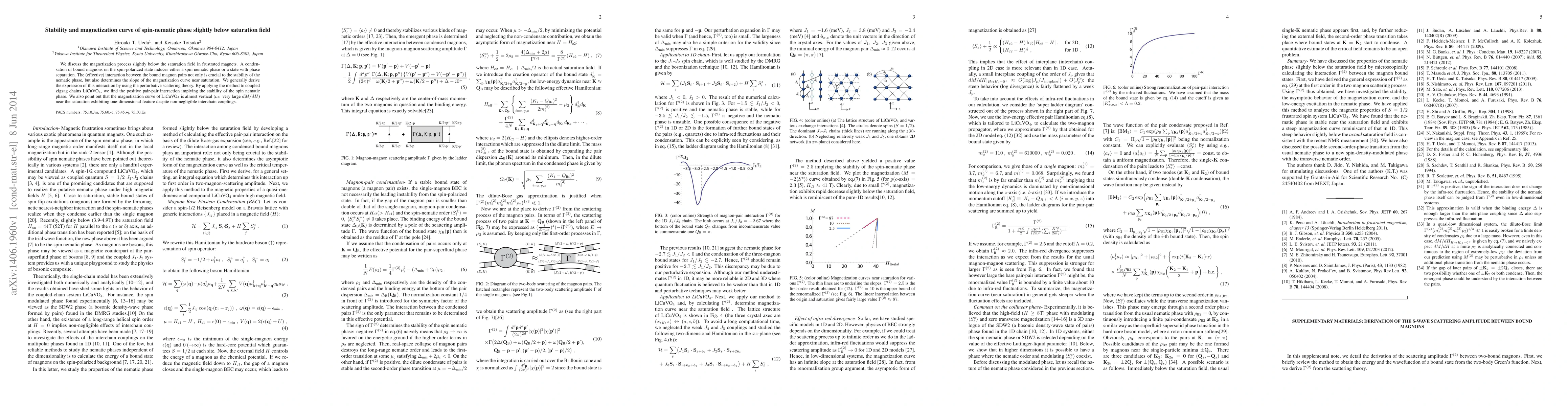 We discuss the magnetization process slightly below the saturation field in frustrated magnets. A condensation of bound magnons on the spin-polarized state induces either a spin nematic phase or a state with phase separation. The (effective) interaction between the bound magnon pairs not only is crucial to the stability of the nematic phase, but also determines the slope of the magnetization curve near saturation. We generally derive the expression of this interaction by using the perturbative scattering theory. By applying the method to coupled zigzag chains LiCuVO4, we find the positive pair-pair interaction implying the stability of the spin nematic phase. We also point out that the magnetization curve of LiCuVO4 is almost vertical (i.e. very large dM/dH) near the saturation exhibiting one-dimensional feature despite non-negligible interchain couplings.