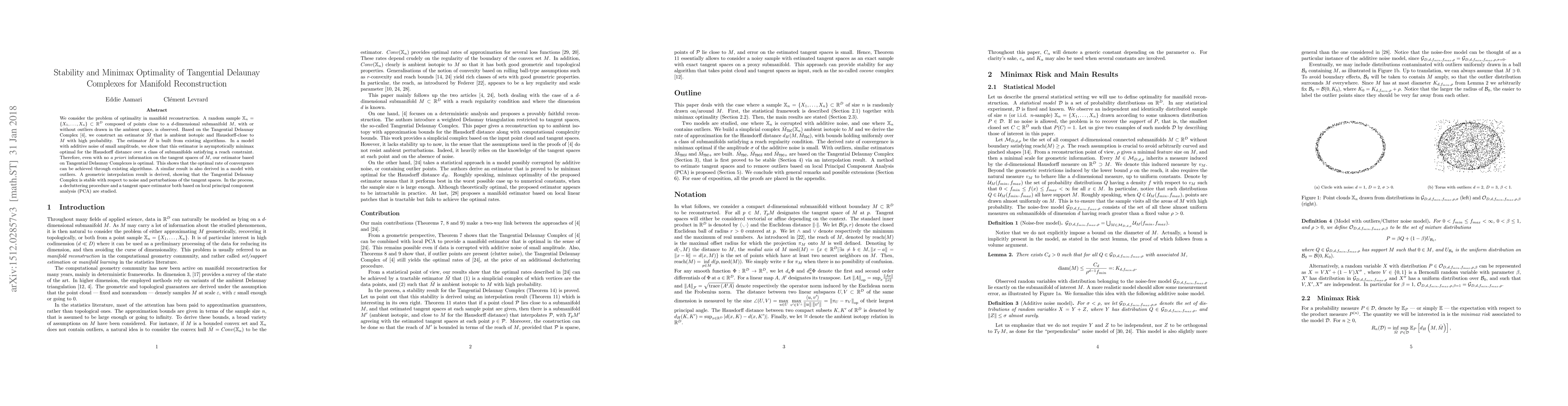 We consider the problem of optimality in manifold reconstruction. A random sample $\mathbb{X}_n = \left\{X_1,\ldots,X_n\right\}\subset \mathbb{R}^D$ composed of points close to a $d$-dimensional submanifold $M$, with or without outliers drawn in the ambient space, is observed. Based on the Tangential Delaunay Complex, we construct an estimator $\hat{M}$ that is ambient isotopic and Hausdorff-close to $M$ with high probability. The estimator $\hat{M}$ is built from existing algorithms. In a model with additive noise of small amplitude, we show that this estimator is asymptotically minimax optimal for the Hausdorff distance over a class of submanifolds satisfying a reach constraint. Therefore, even with no a priori information on the tangent spaces of $M$, our estimator based on Tangential Delaunay Complexes is optimal. This shows that the optimal rate of convergence can be achieved through existing algorithms. A similar result is also derived in a model with outliers. A geometric interpolation result is derived, showing that the Tangential Delaunay Complex is stable with respect to noise and perturbations of the tangent spaces. In the process, a decluttering procedure and a tangent space estimator both based on local principal component analysis (PCA) are studied.