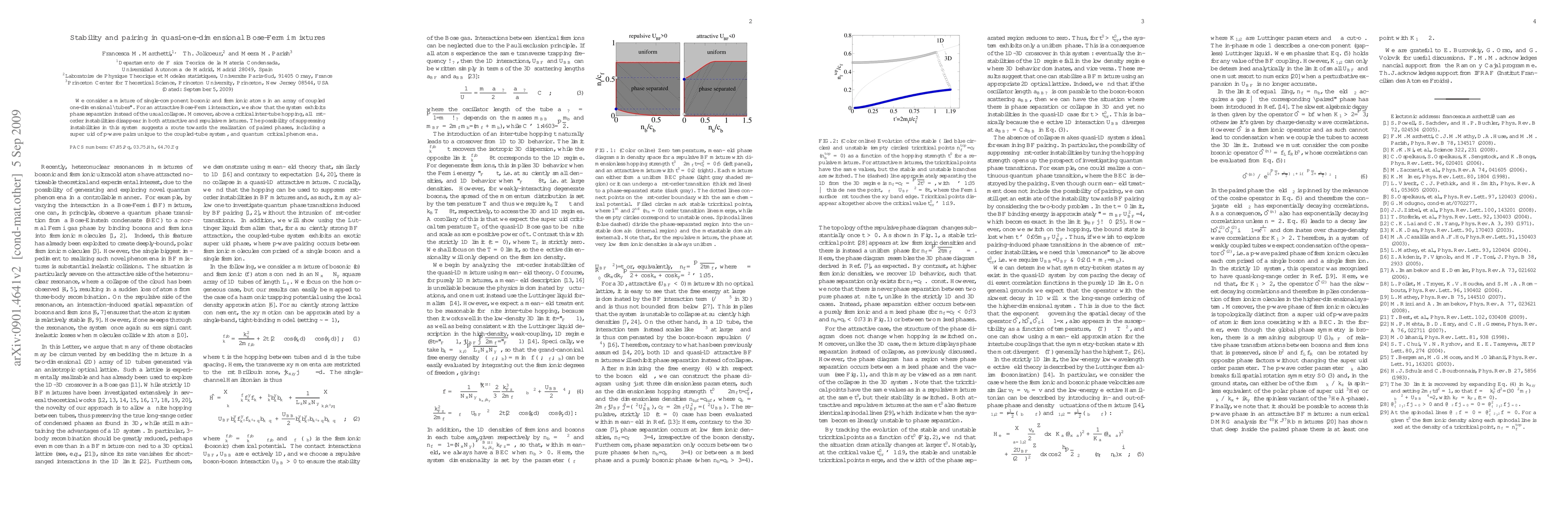 This paper investigates a quasi-one-dimensional Bose-Fermi mixture in coupled tubes, demonstrating that attractive interactions lead to phase separation rather than collapse, and that above a critical inter-tube hopping, instabilities vanish, enabling the realization of paired phases and unique superfluid states.