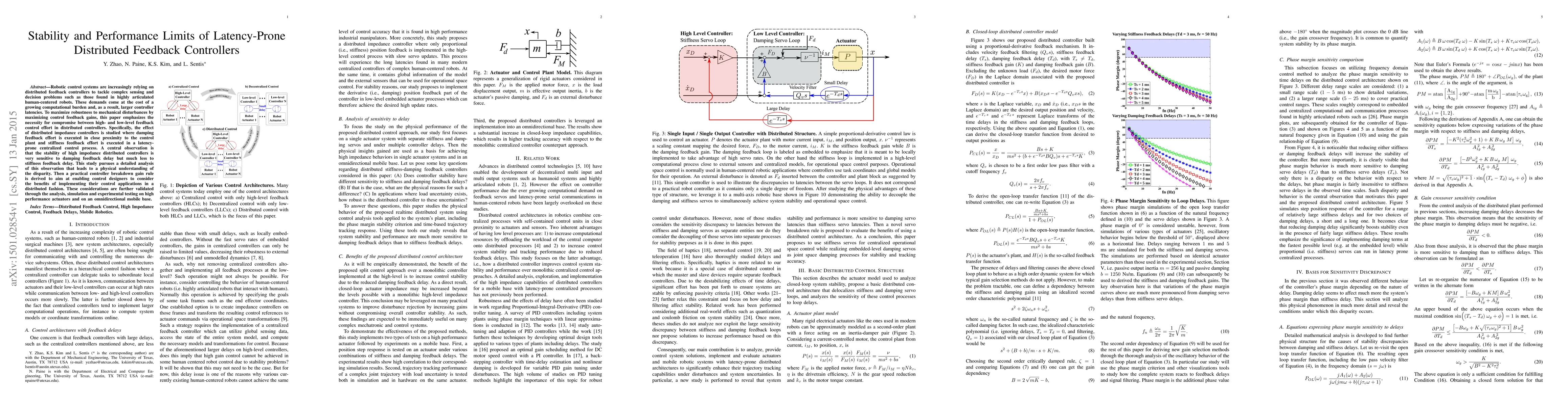Robotic control systems are increasingly relying on distributed feedback controllers to tackle complex sensing and decision problems such as those found in highly articulated human-centered robots. These demands come at the cost of a growing computational burden and, as a result, larger controller latencies. To maximize robustness to mechanical disturbances by maximizing control feedback gains, this paper emphasizes the necessity for compromise between high- and low-level feedback control effort in distributed controllers. Specifically, the effect of distributed impedance controllers is studied where damping feedback effort is executed in close proximity to the control plant and stiffness feedback effort is executed in a latency-prone centralized control process. A central observation is that the stability of high impedance distributed controllers is very sensitive to damping feedback delay but much less to stiffness feedback delay. This study pursues a detailed analysis of this observation that leads to a physical understanding of the disparity. Then a practical controller breakdown gain rule is derived to aim at enabling control designers to consider the benefits of implementing their control applications in a distributed fashion. These considerations are further validated through the analysis, simulation and experimental testing on high performance actuators and on an omnidirectional mobile base.