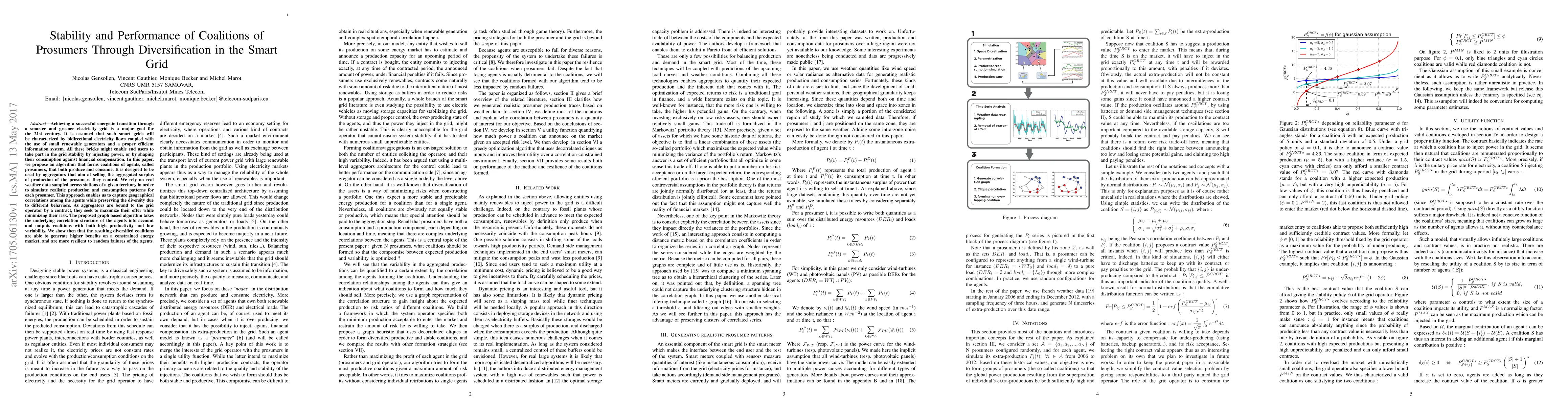 This paper proposes an algorithm to form coalitions of prosumers in smart grids, leveraging real weather data to simulate diverse production and consumption patterns. The algorithm optimizes for both productivity and risk minimization, resulting in diversified coalitions that enhance grid stability and resilience to failures.
