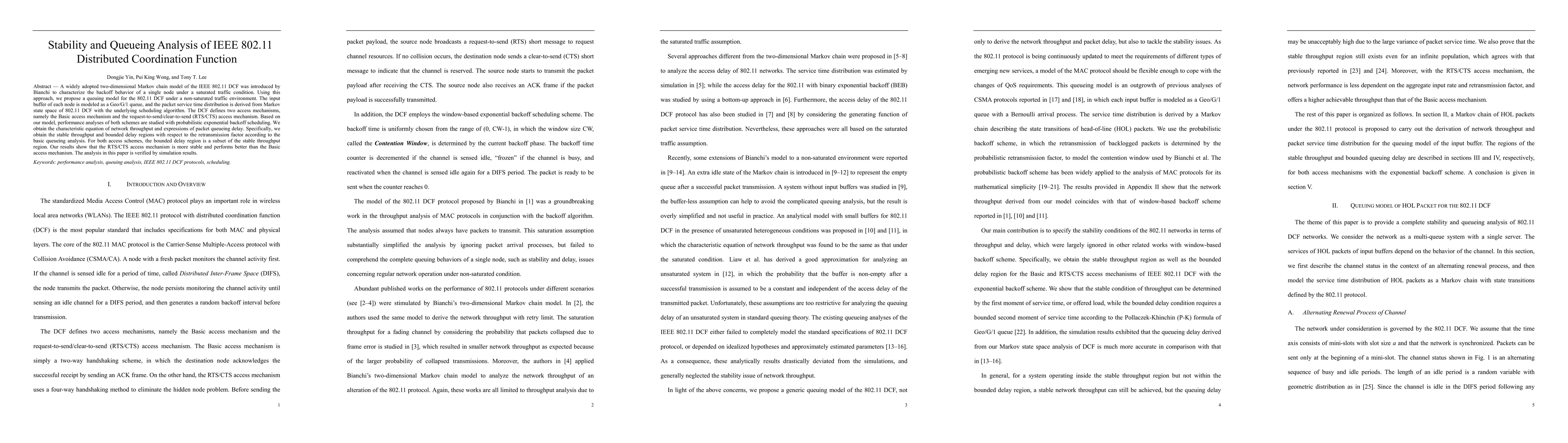 This paper proposes a queuing model for IEEE 802.11 DCF under non-saturated traffic conditions, using a Geo/G/1 queue to model node input buffers. It analyzes both Basic and RTS/CTS access mechanisms, showing that RTS/CTS is more stable and efficient, verified by simulation.