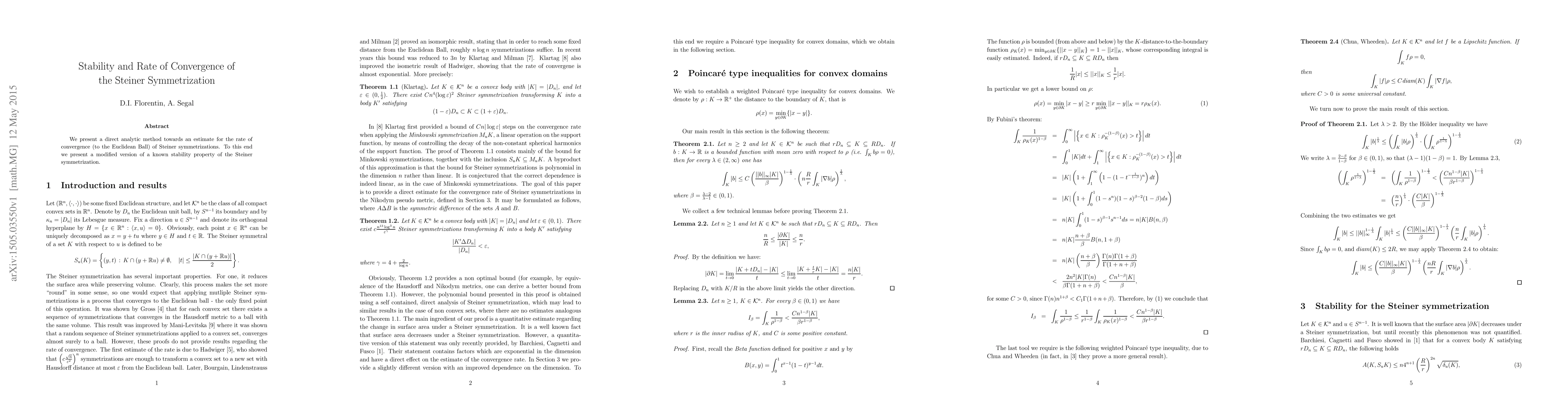 This paper introduces a novel analytic method to estimate the rate of convergence for Steiner symmetrizations towards the Euclidean Ball, utilizing a modified stability property of the Steiner symmetrization process.