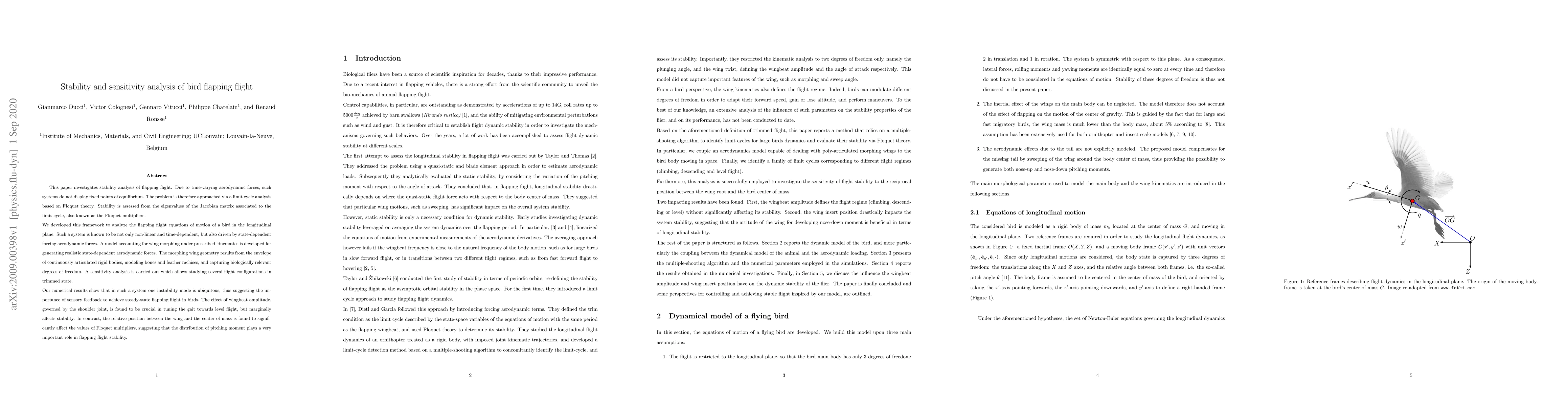 Researchers analyzed the stability of bird flapping flight using Floquet theory and found that sensitivity to wing morphology and position plays a crucial role in achieving steady-state flight, while wingbeat amplitude has a minor effect on stability.