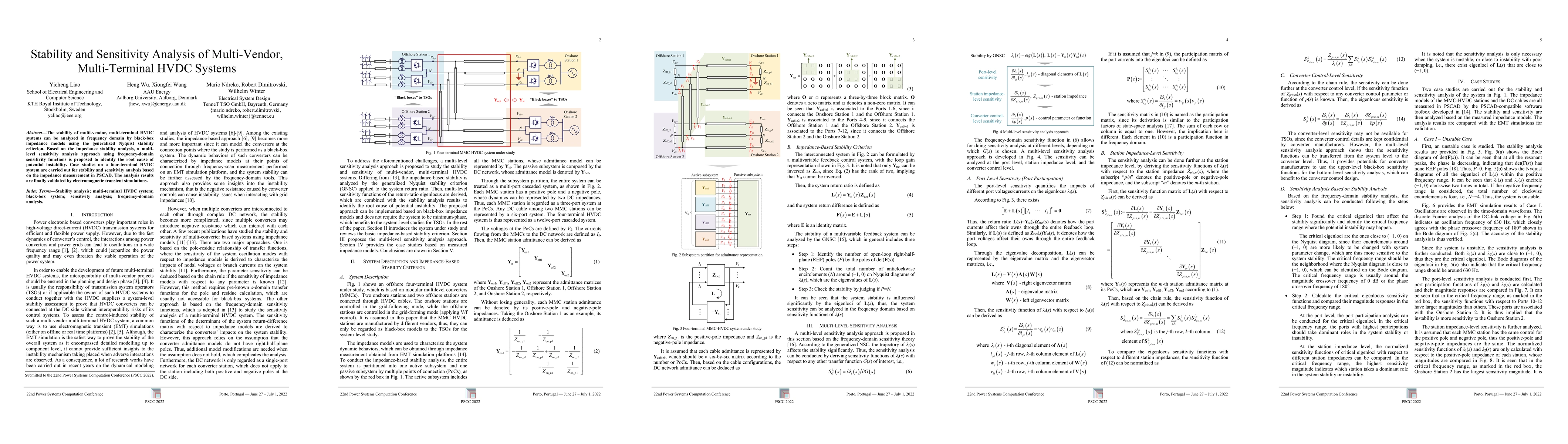 This paper analyzes the stability of multi-vendor, multi-terminal HVDC systems using frequency-domain impedance models and the generalized Nyquist criterion, followed by a multi-level sensitivity analysis to pinpoint instability causes. Case studies on a four-terminal HVDC system validate the approach through PSCAD measurements and electromagnetic transient simulations.